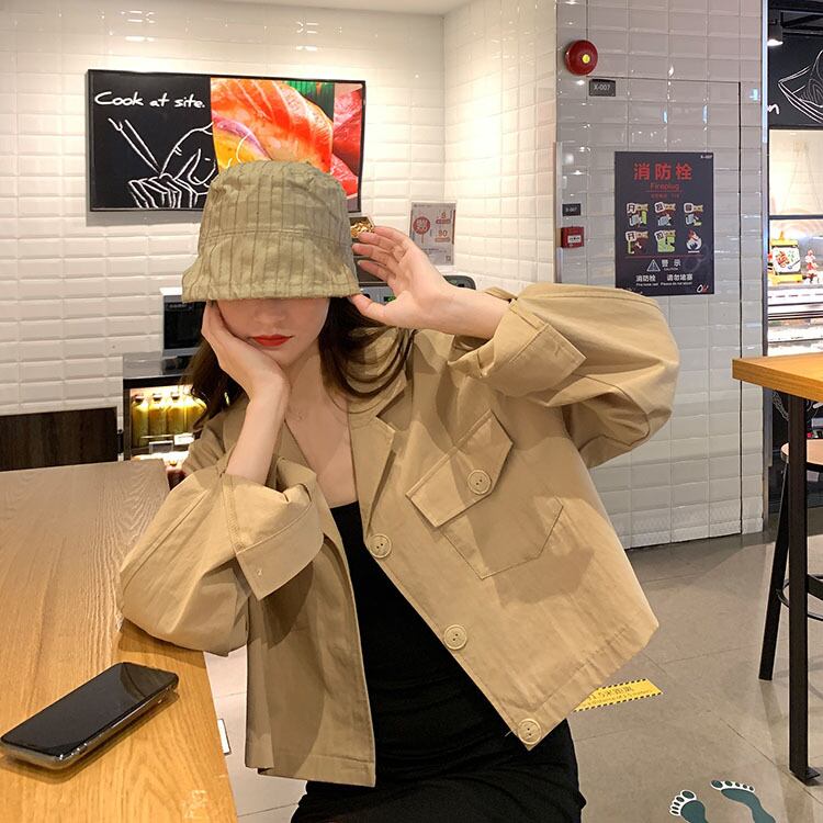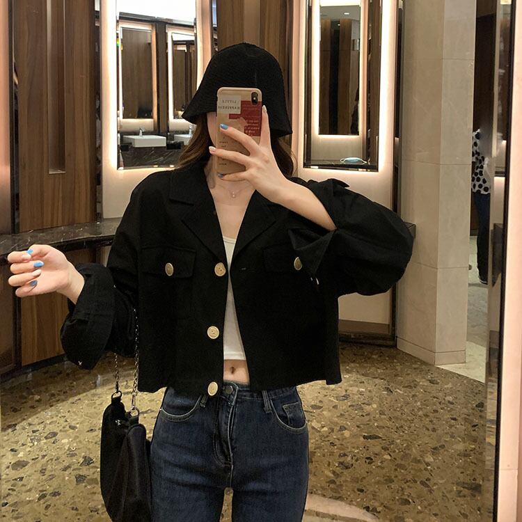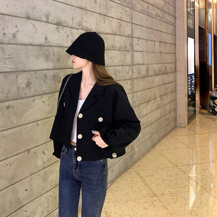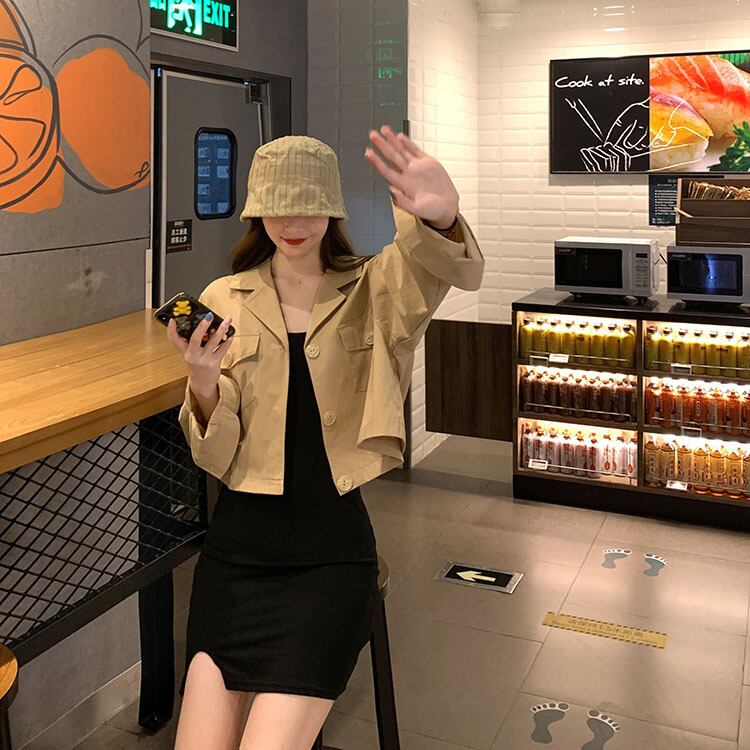 ショートコート スプリングオータムレッドブラックトップス ロング 春物 秋物 YY-ファッション87888149385