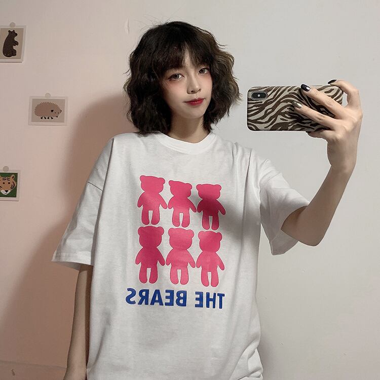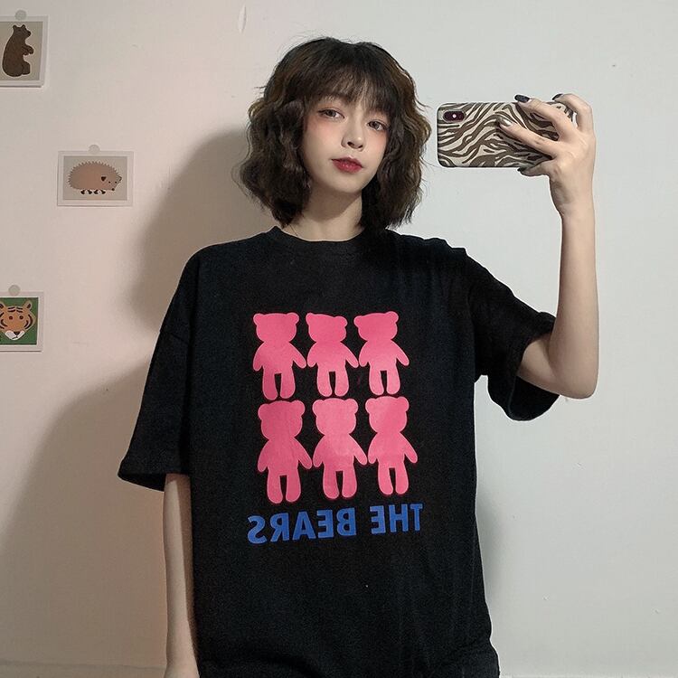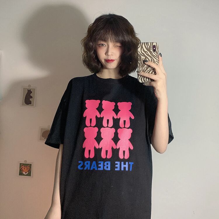 色:ホワイト6クマTシャツ,黒6クマTシャツ