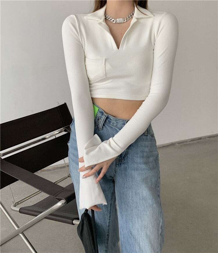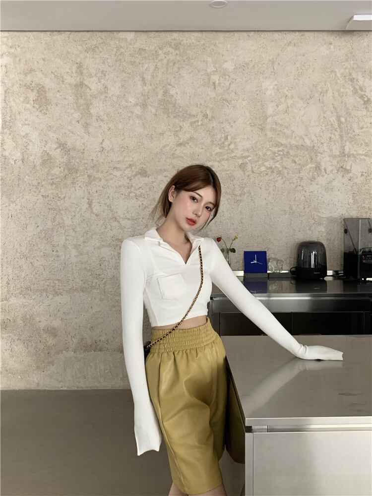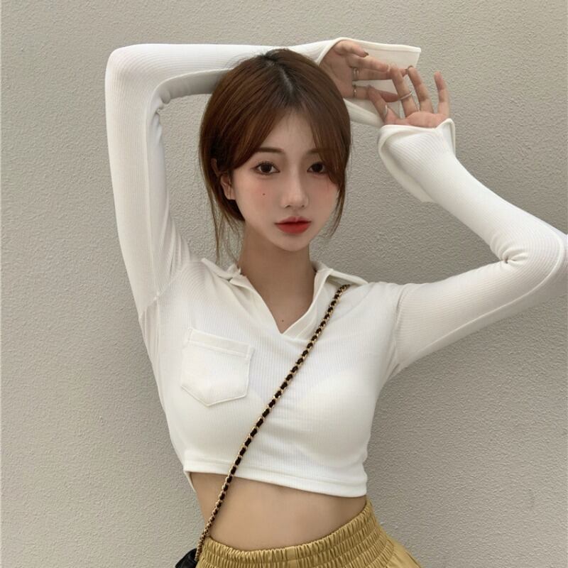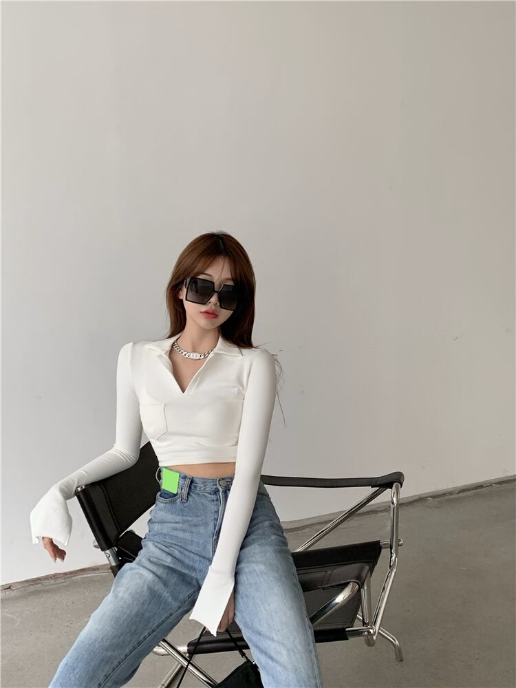 ホワイトTシャツ シャツ スプリングスリムショート長袖スリーブトップス ロング 春物 YY-ファッション44923594645