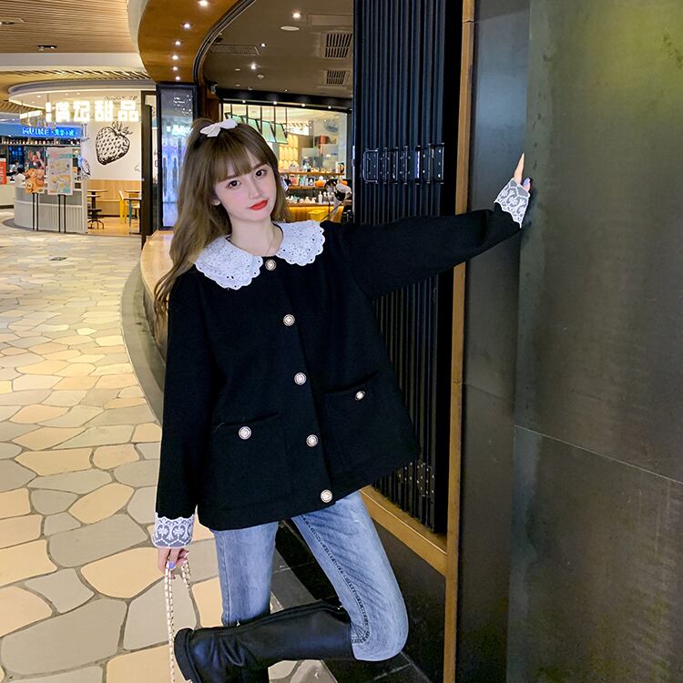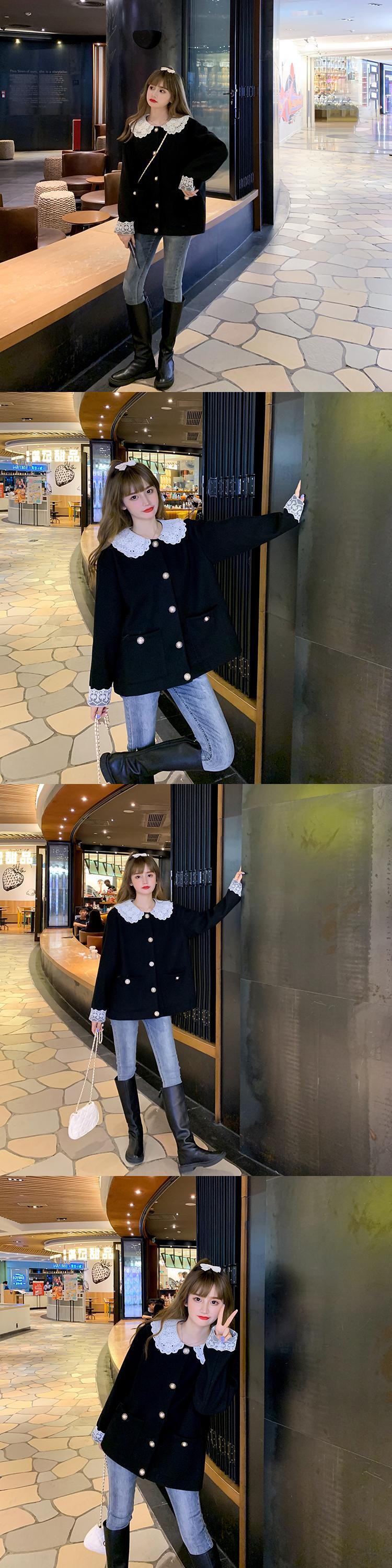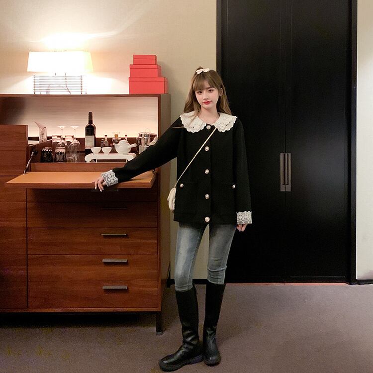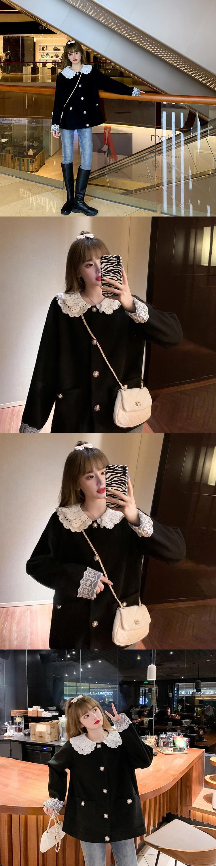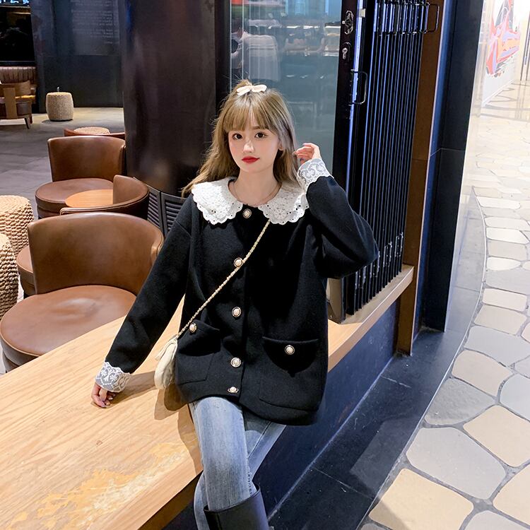 レースカラーカーディガンコート ジャケット ロング ステッチ YY-ファッション68847177938