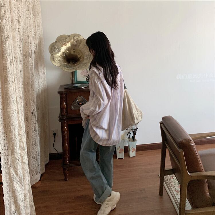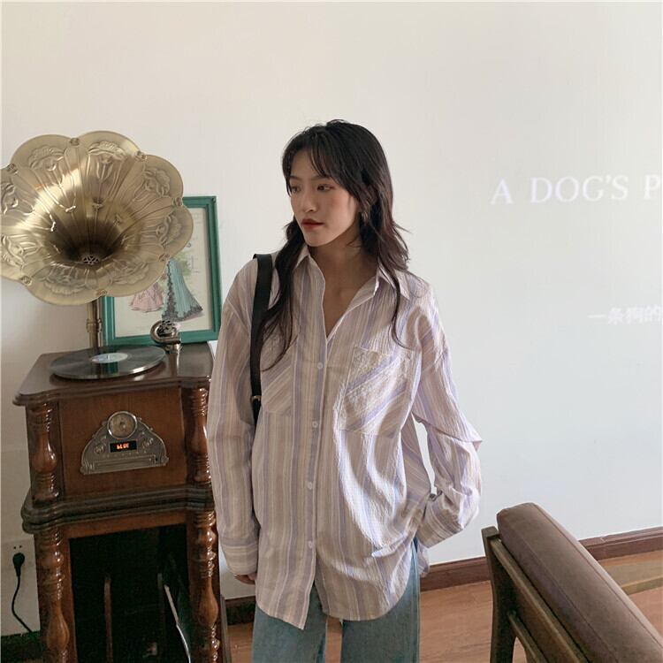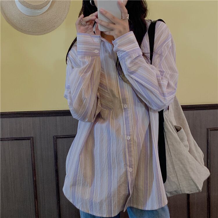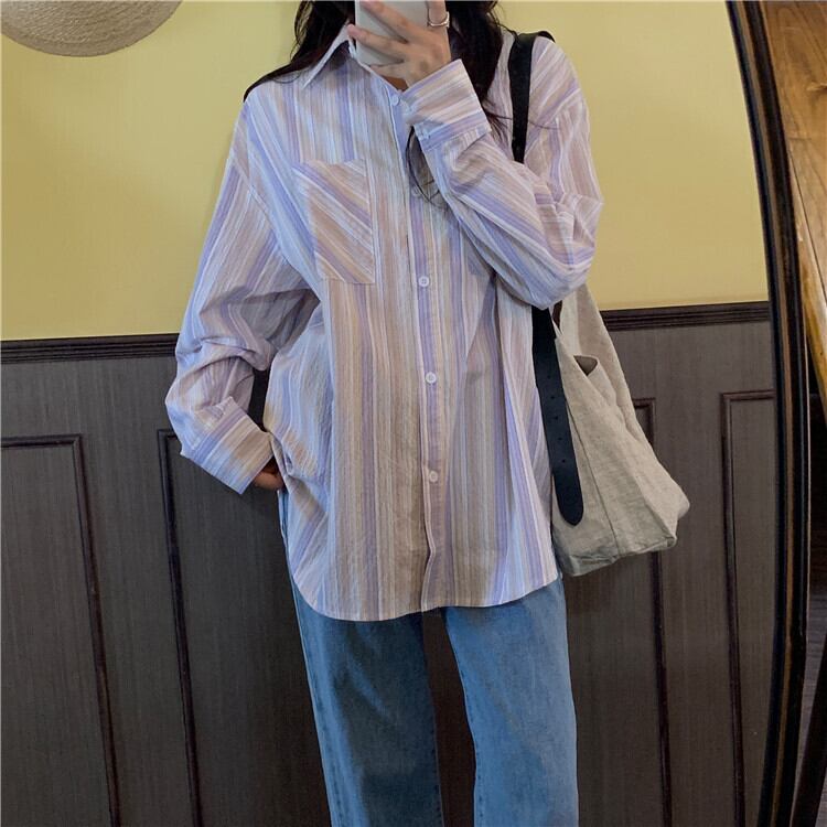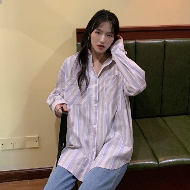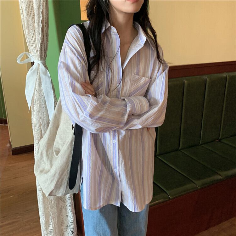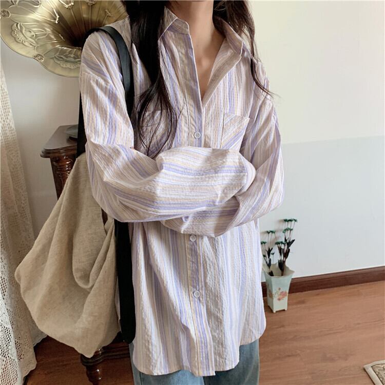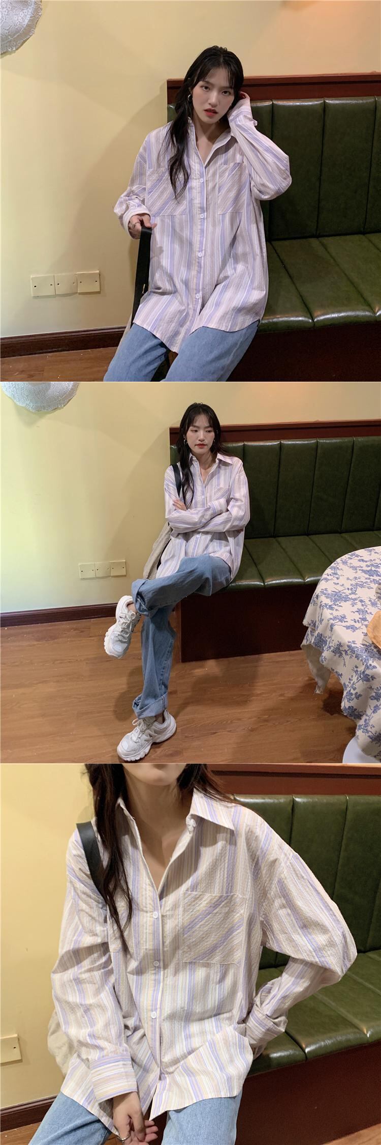 スプリングスタイルストライプルーズシャツ トップス ロング 春物 YY-ファッション13360266056