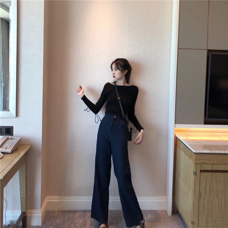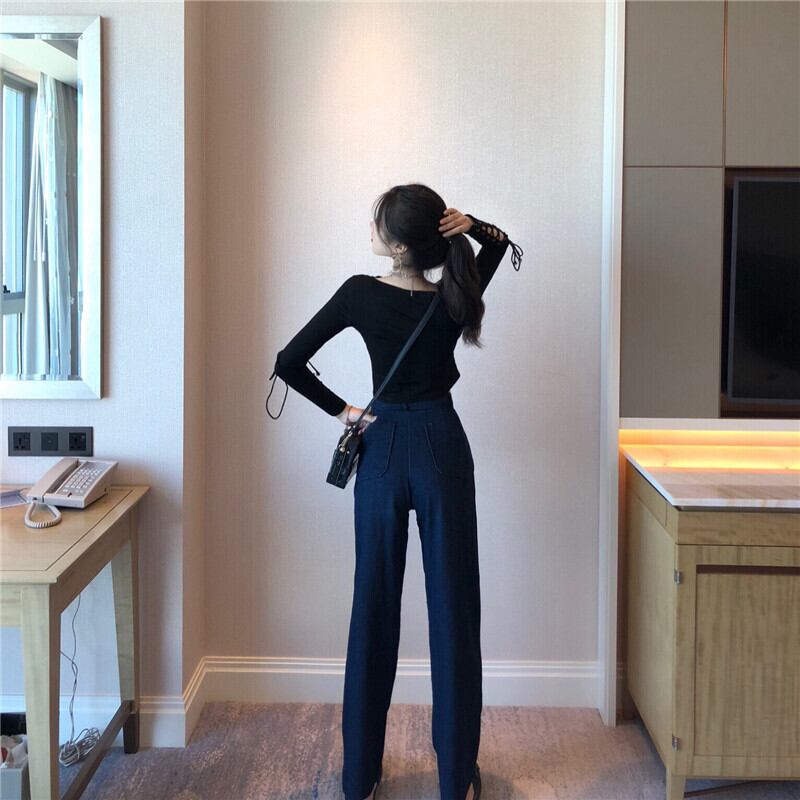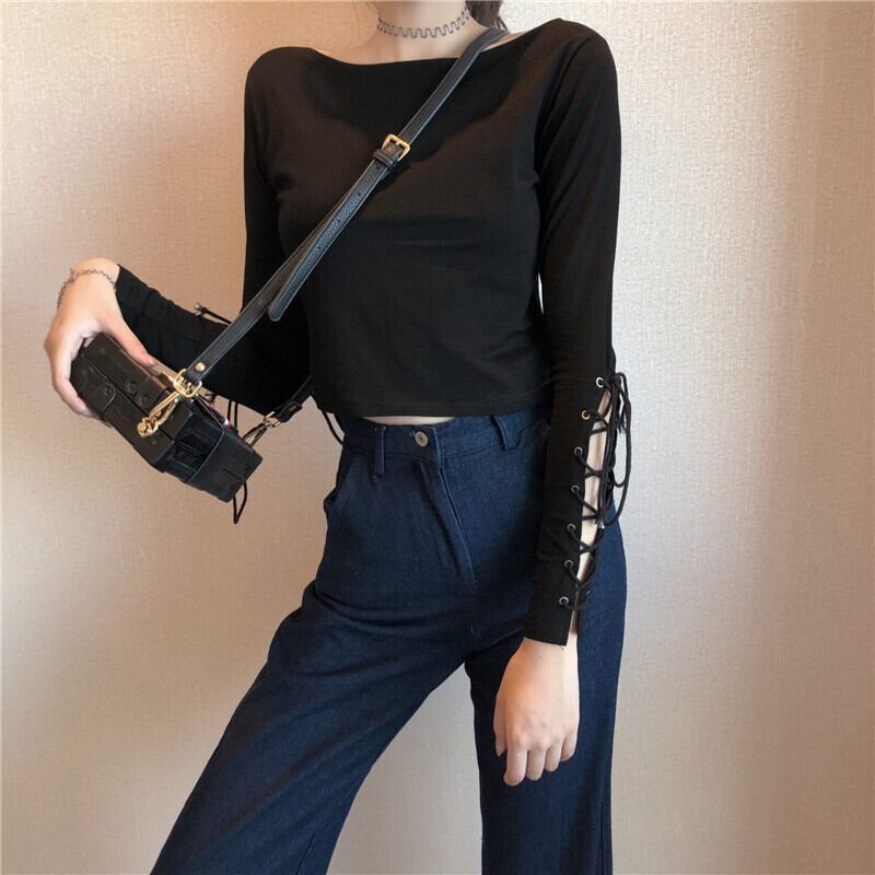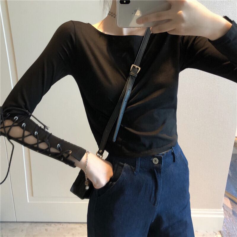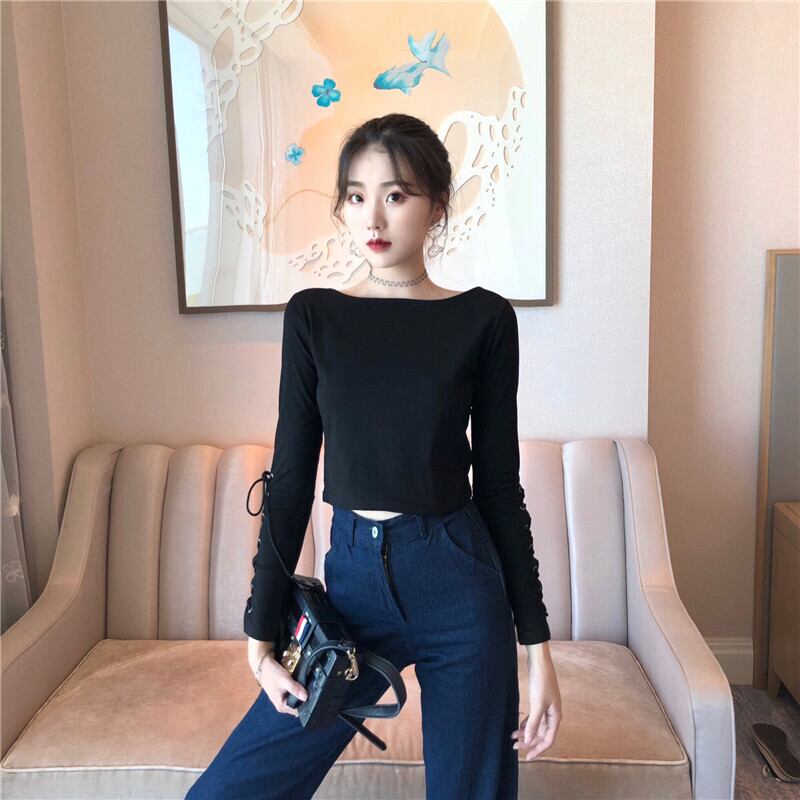 ショートクロップトップ トップス スプリングラウンドネックレース長袖スリーブスリムシャツ ロング 春物 Oネック ヨーロピアン YY-ファッション20020695878