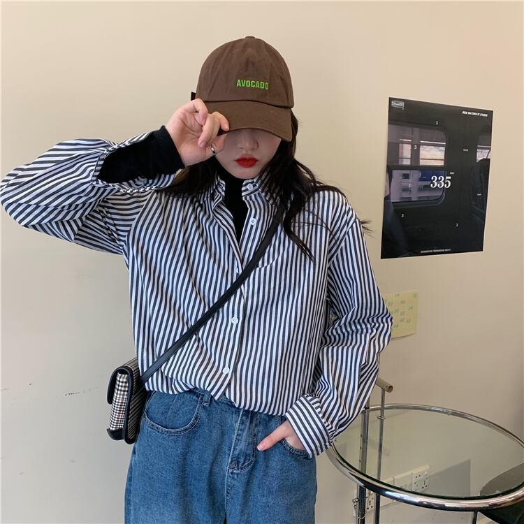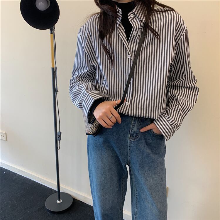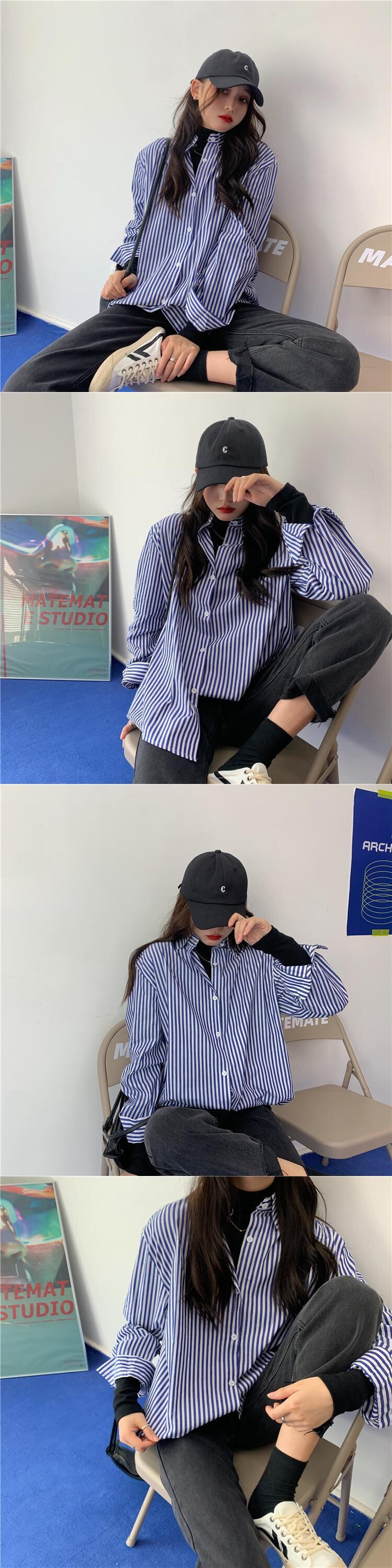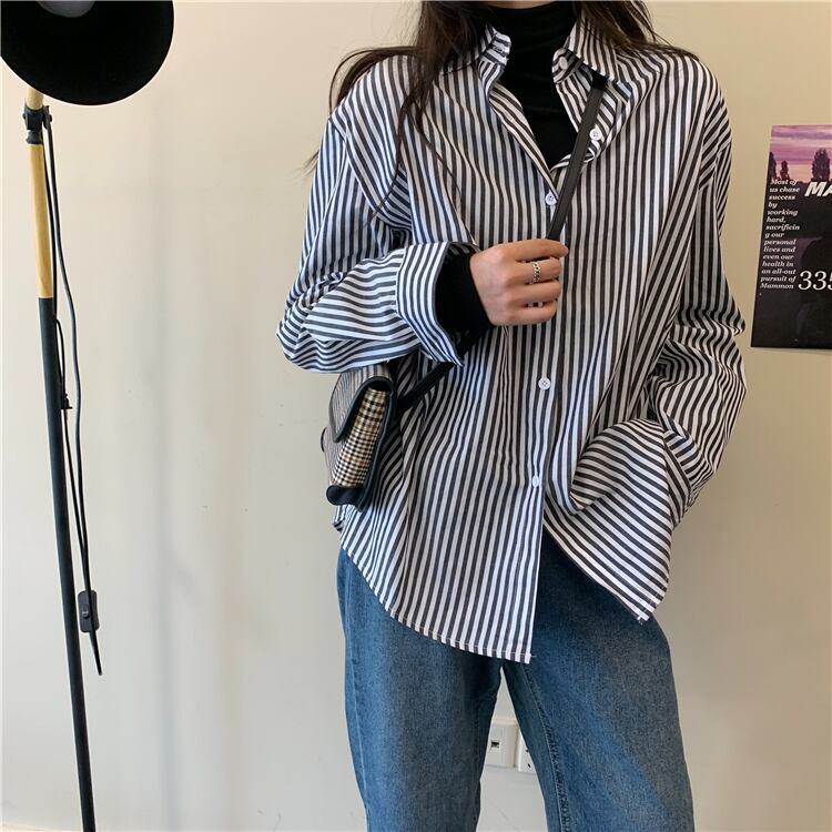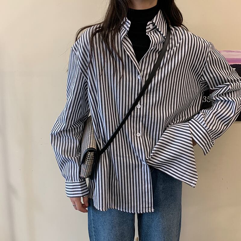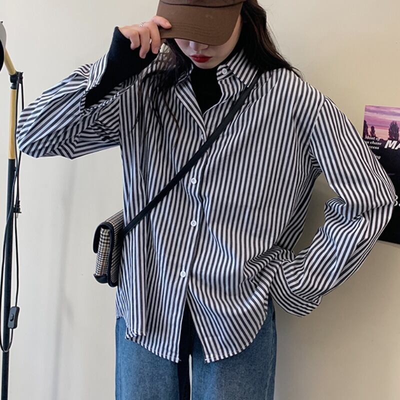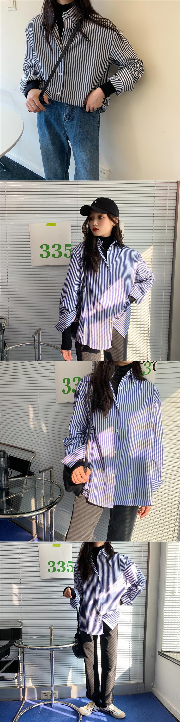ストライプシャツ レディーススプリングカジュアルルーズスリムトップス ロング 春物 YY-ファッション78951272254