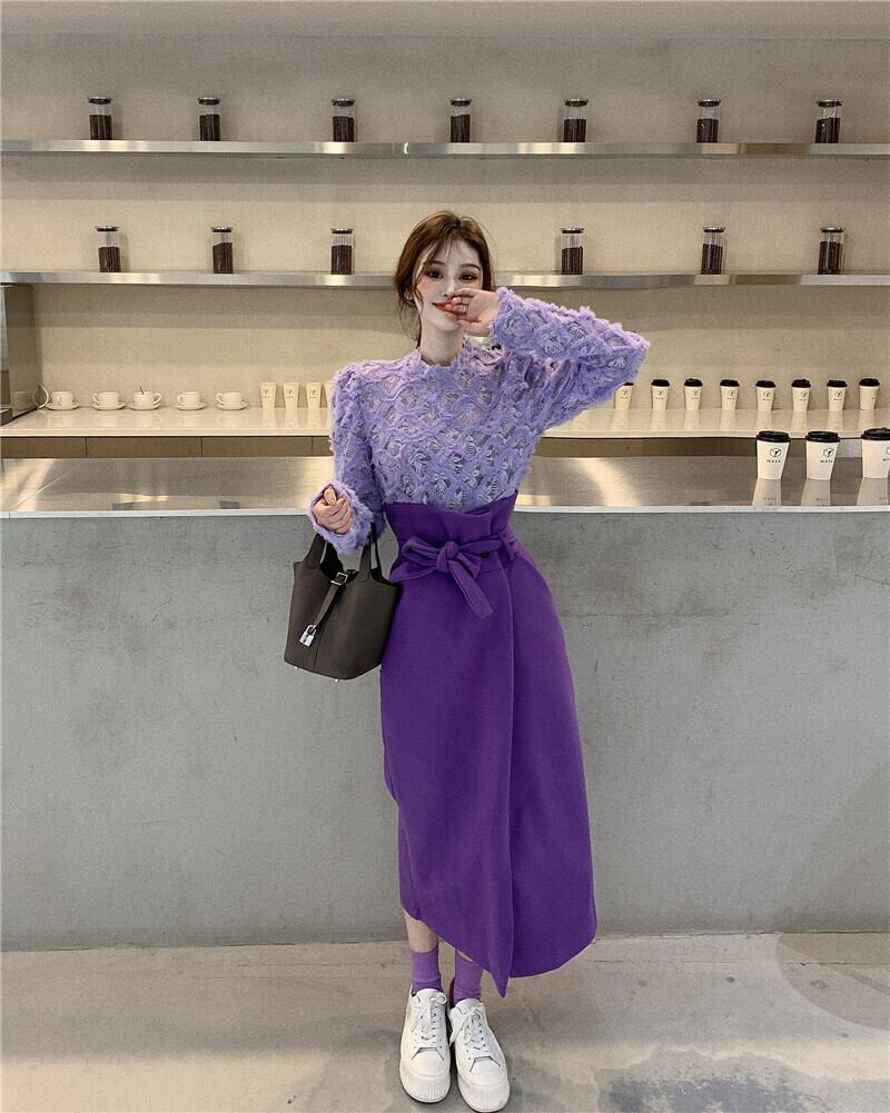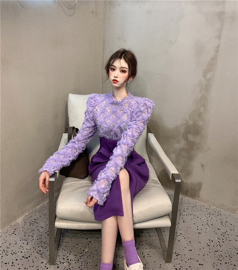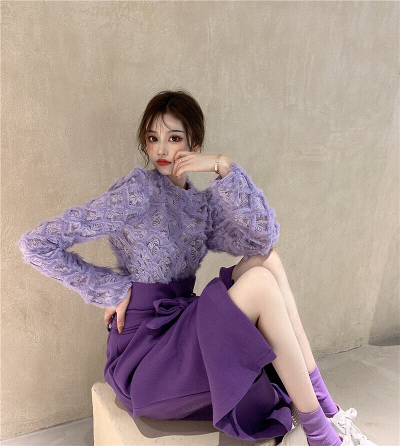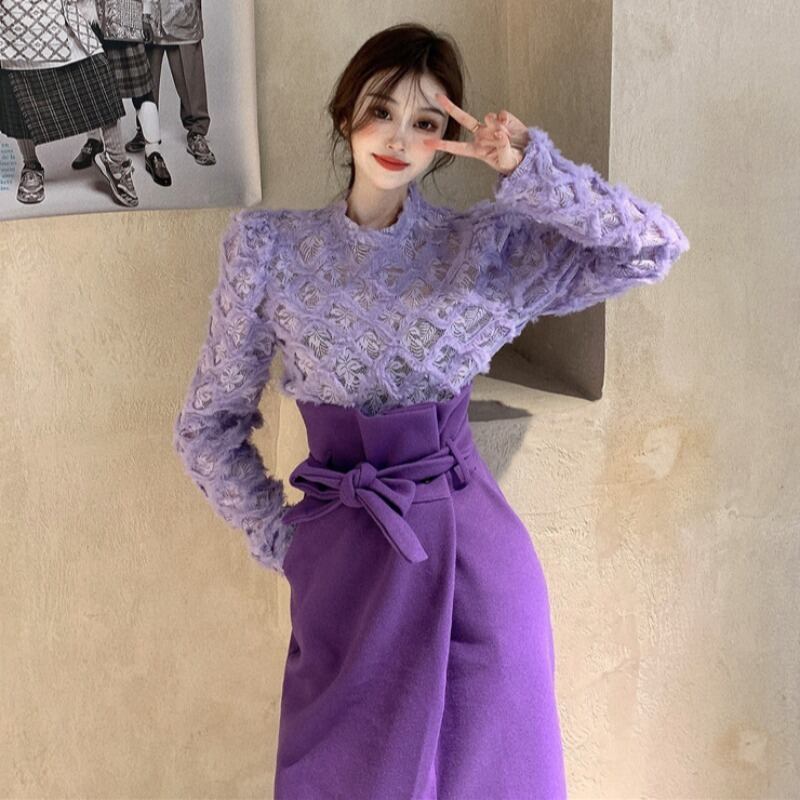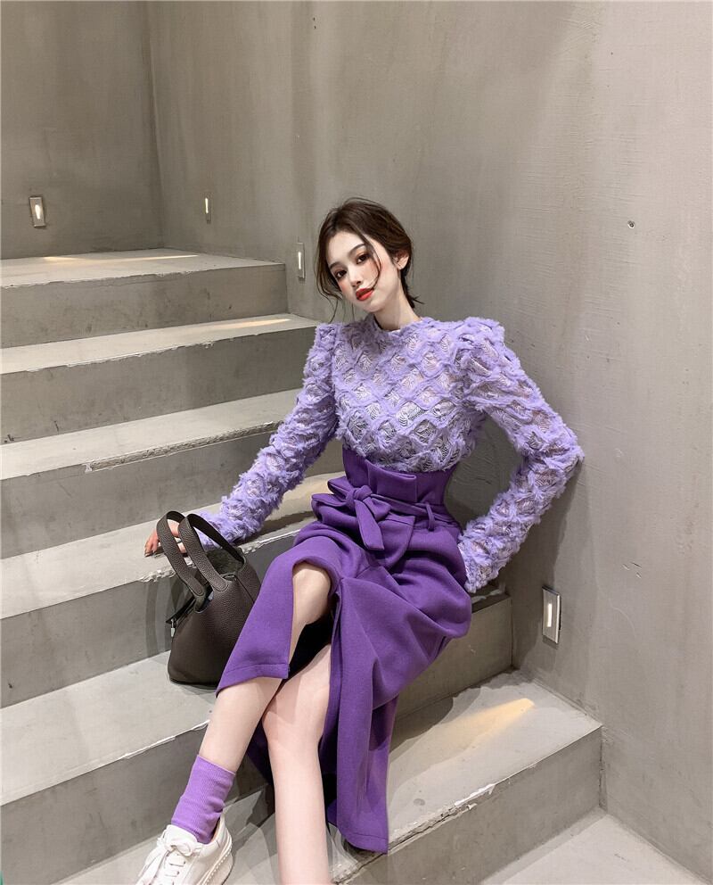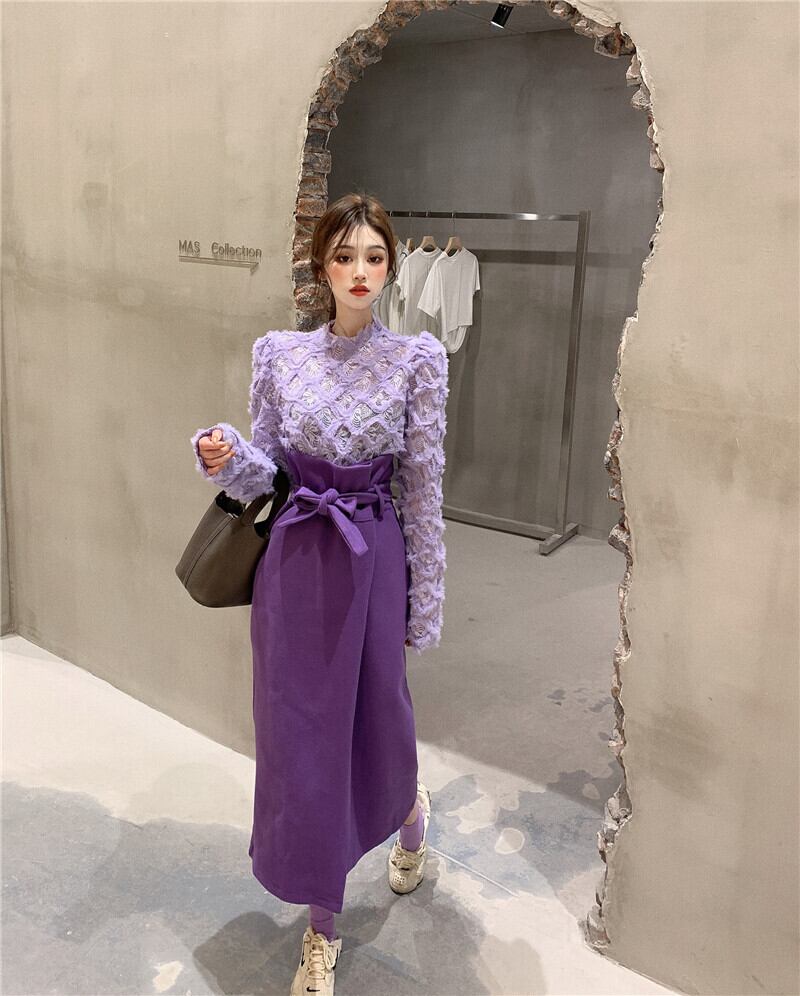 オータムウィンタージャカードトップス レーススカート レディース 秋物 冬物 YY-ファッション27393996219