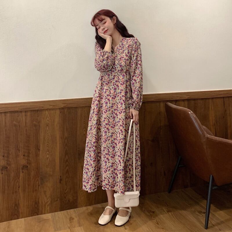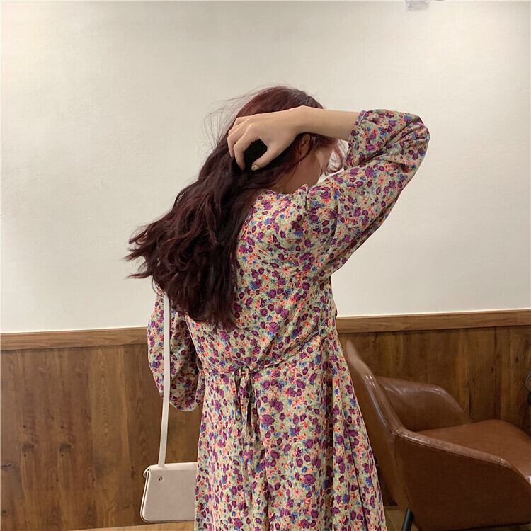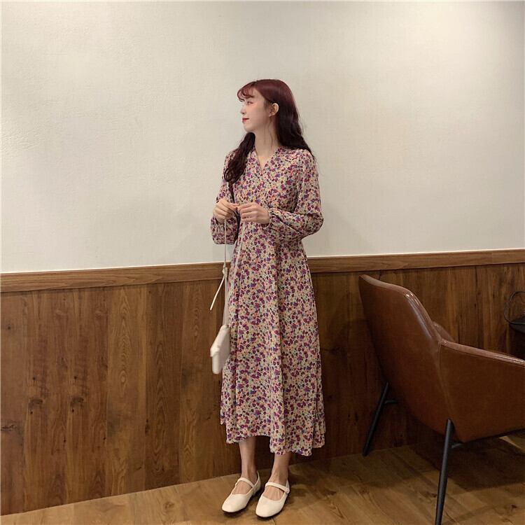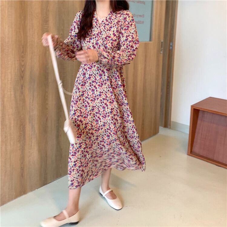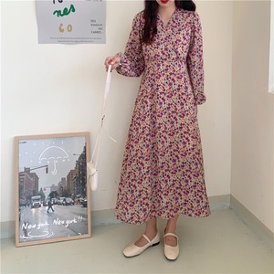 スプリングスタイルルーズVネックフローラル ハイウェスト ロング レッド 春物 花柄 YY-ファッション65004453207