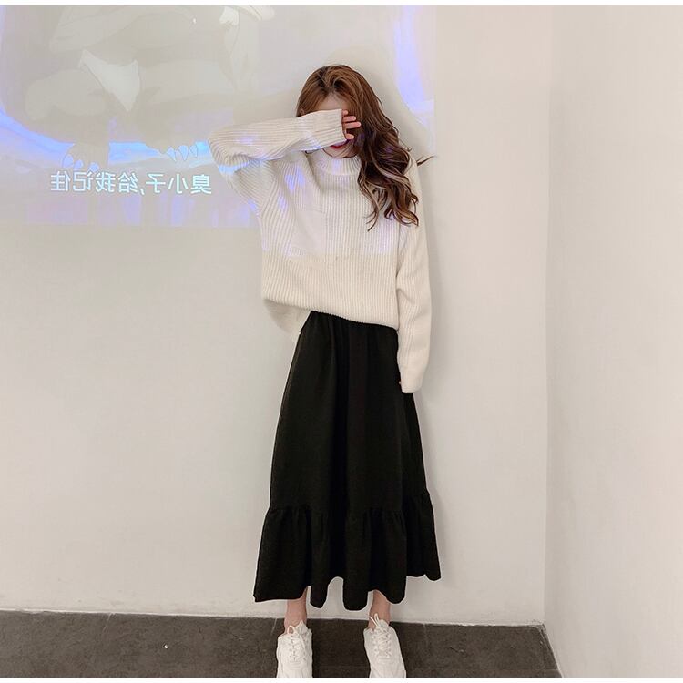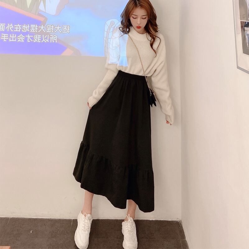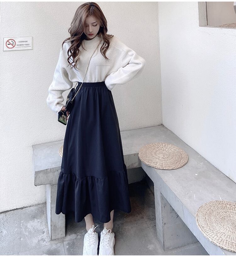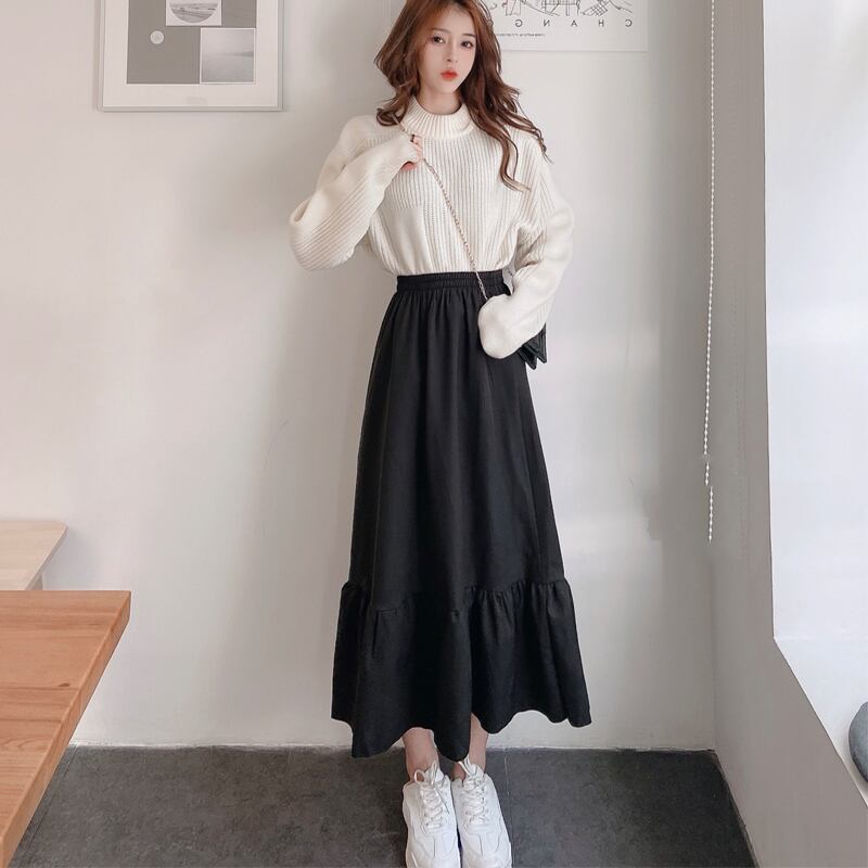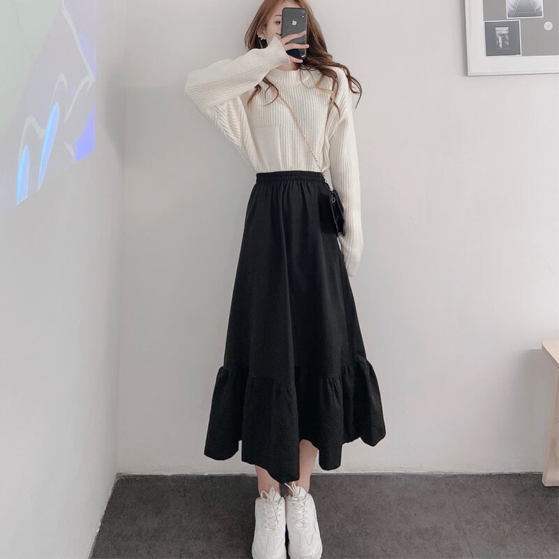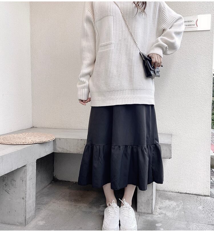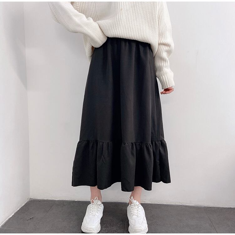 スプリングスタンダードスカート ハイウェストウェストブラックストレッチレディース レトロ エラスティック 伸縮 春物 YY-ファッション54620250750