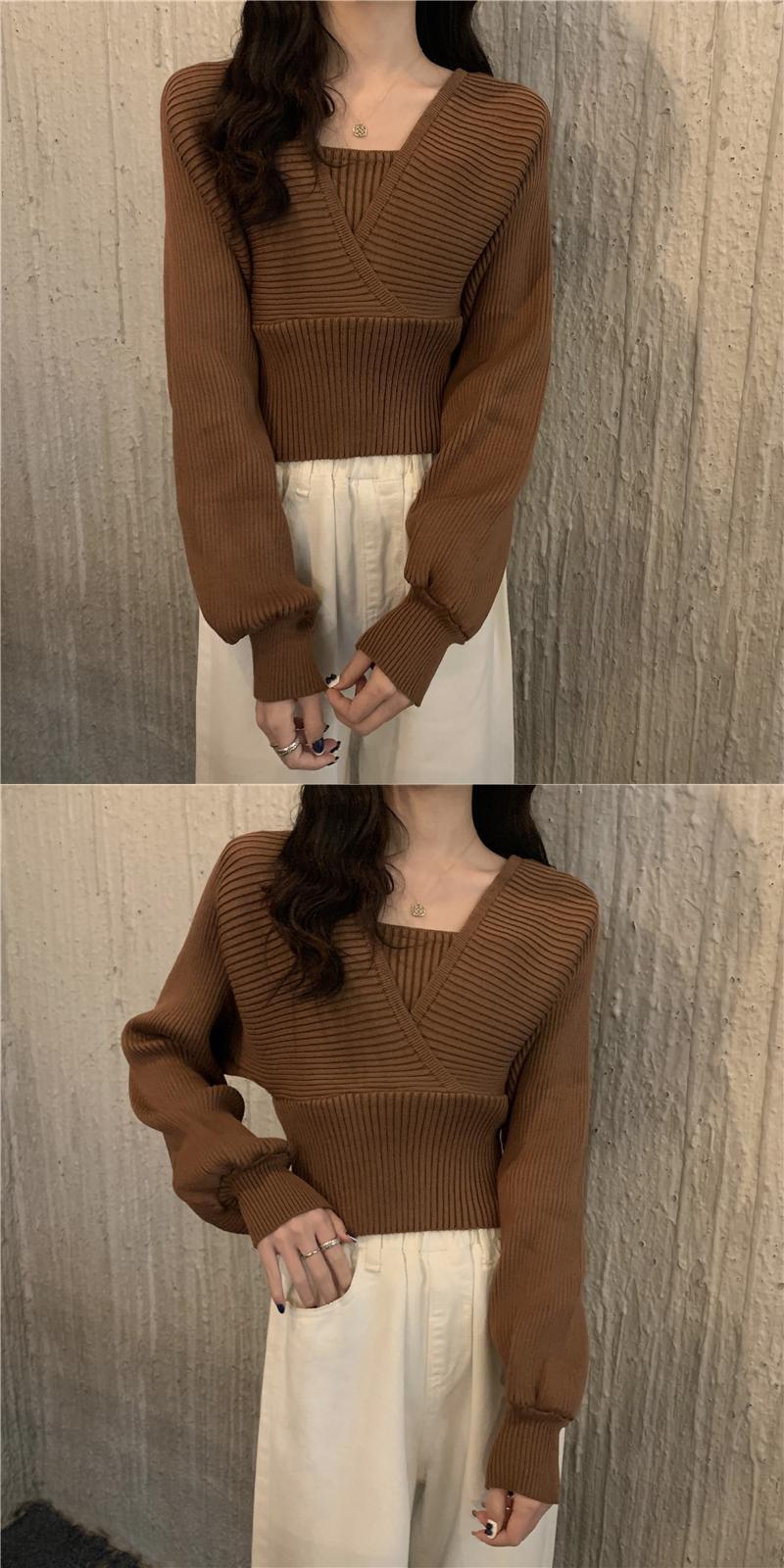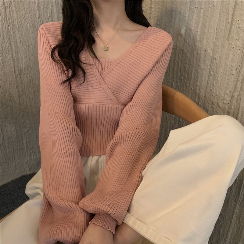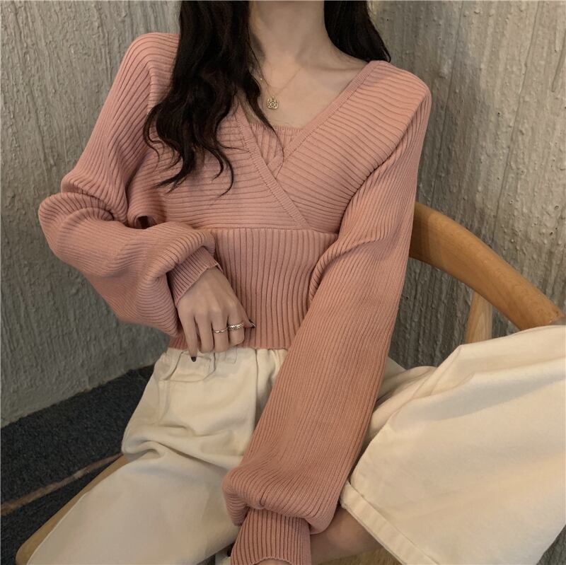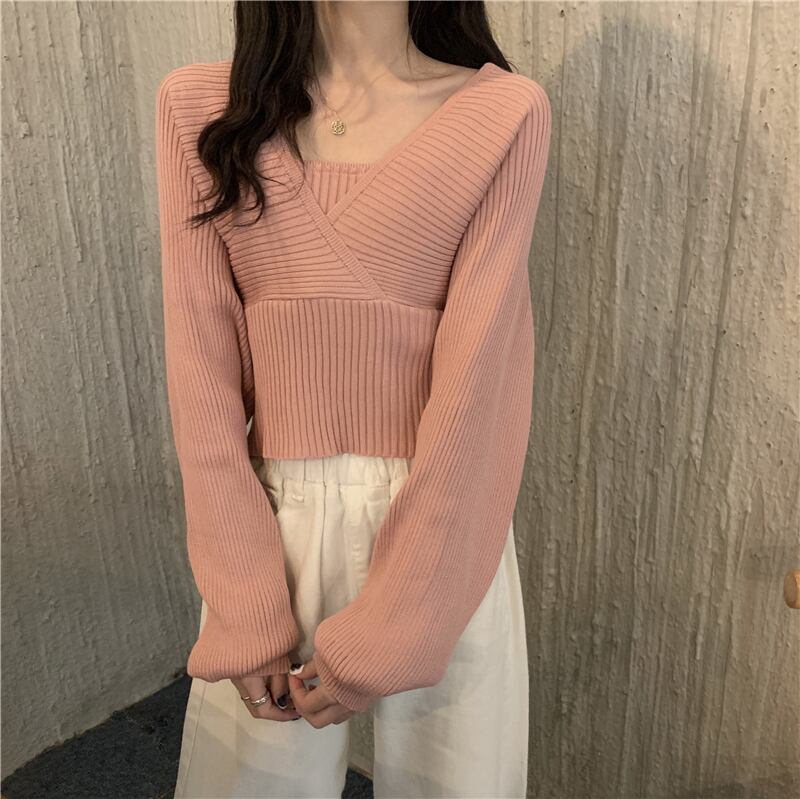 ウールセーター ショートスタイルオータムウィンタートップス ピンク 秋物 冬物 YY-ファッション46472543971