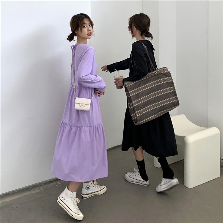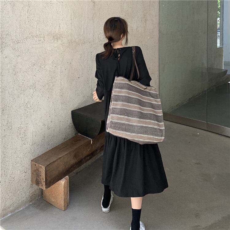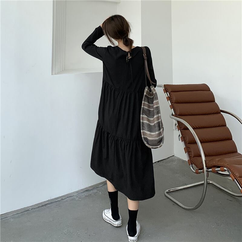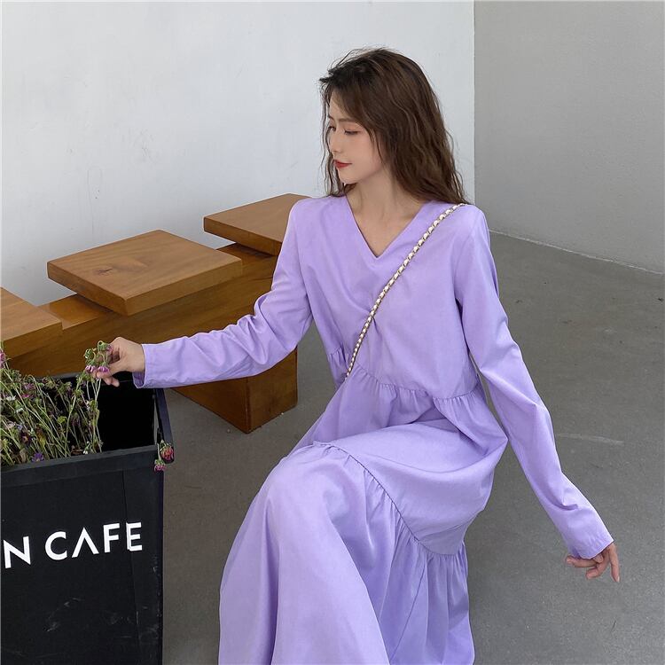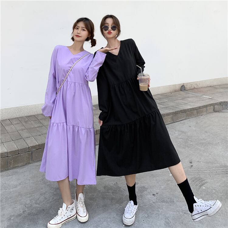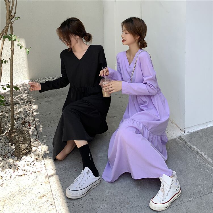 スプリングルーズドレス カラーVネックバックスカート ロング 春物 YY-ファッション56304099113