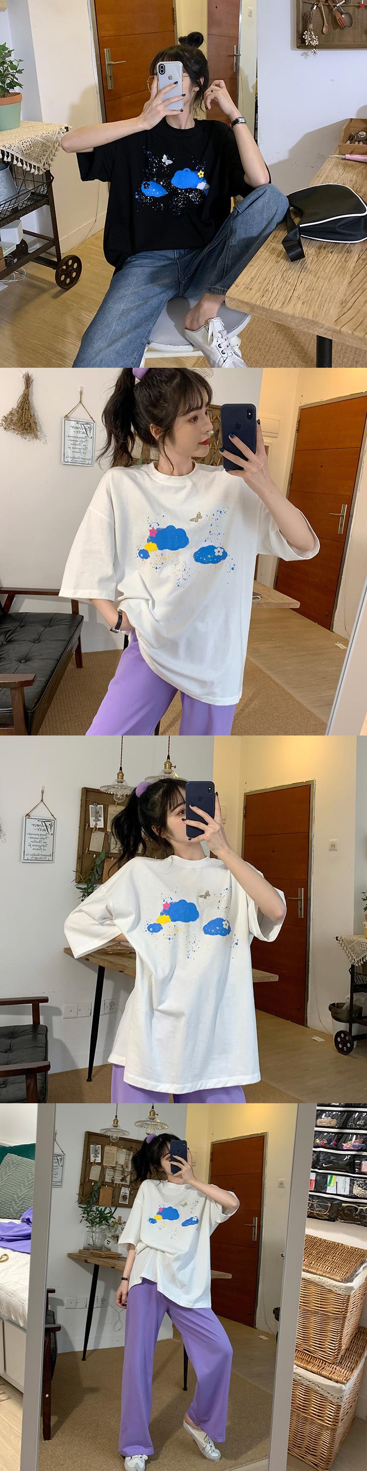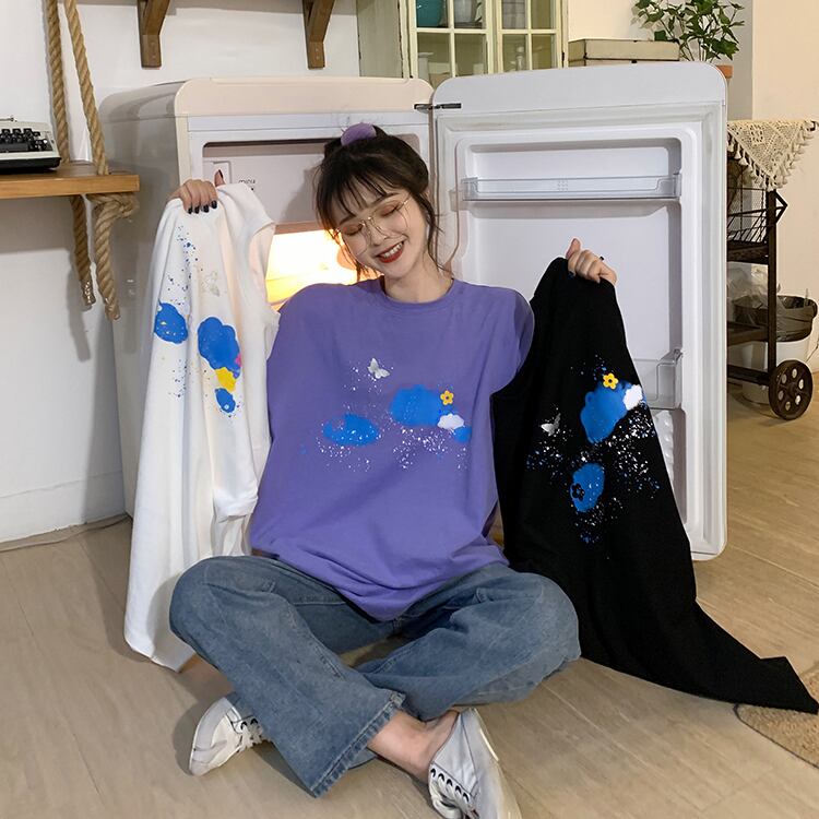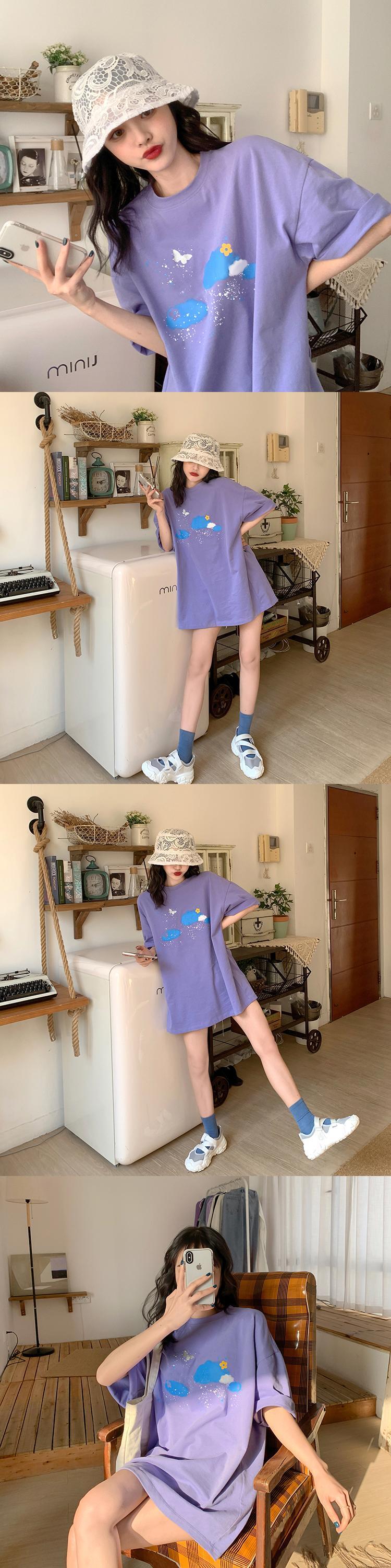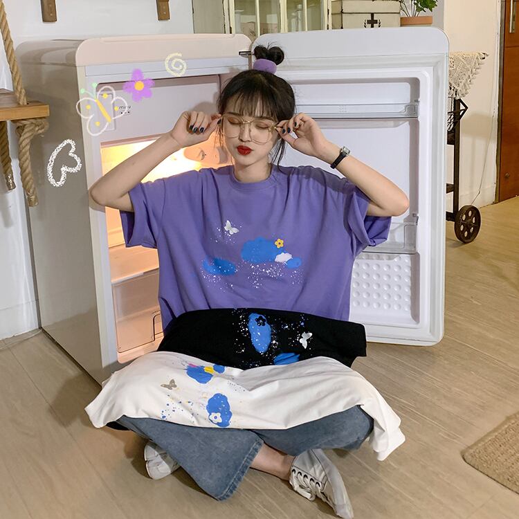 Butterflyデザイン プリント柄Tシャツ パープル YY-ファッション703329823