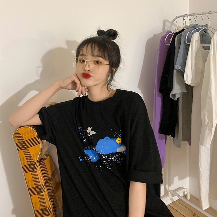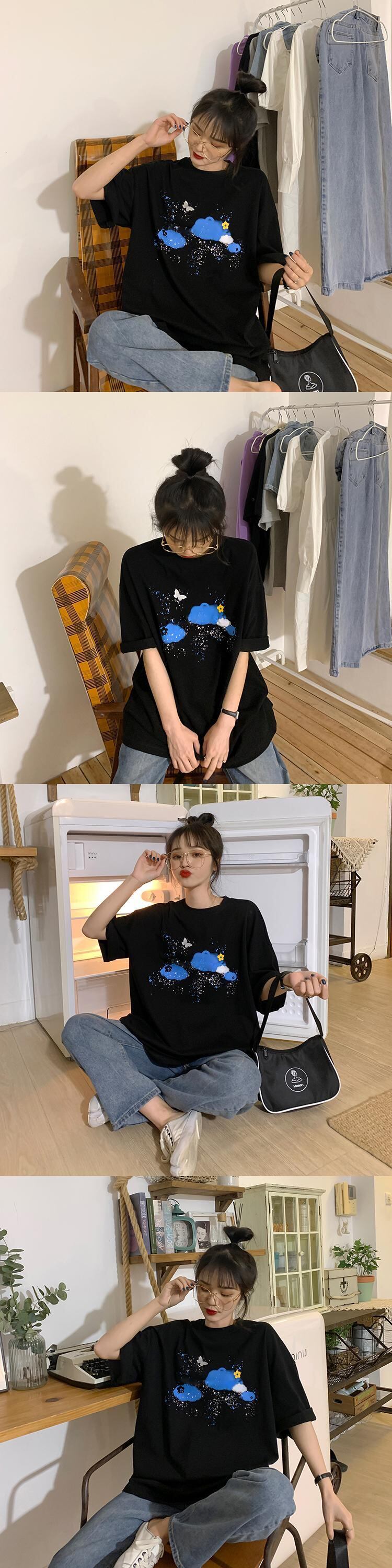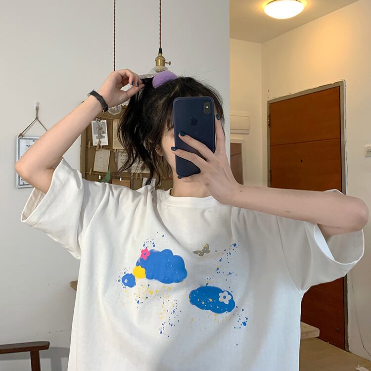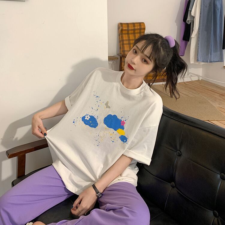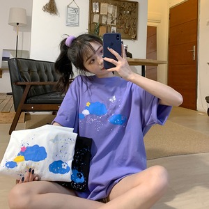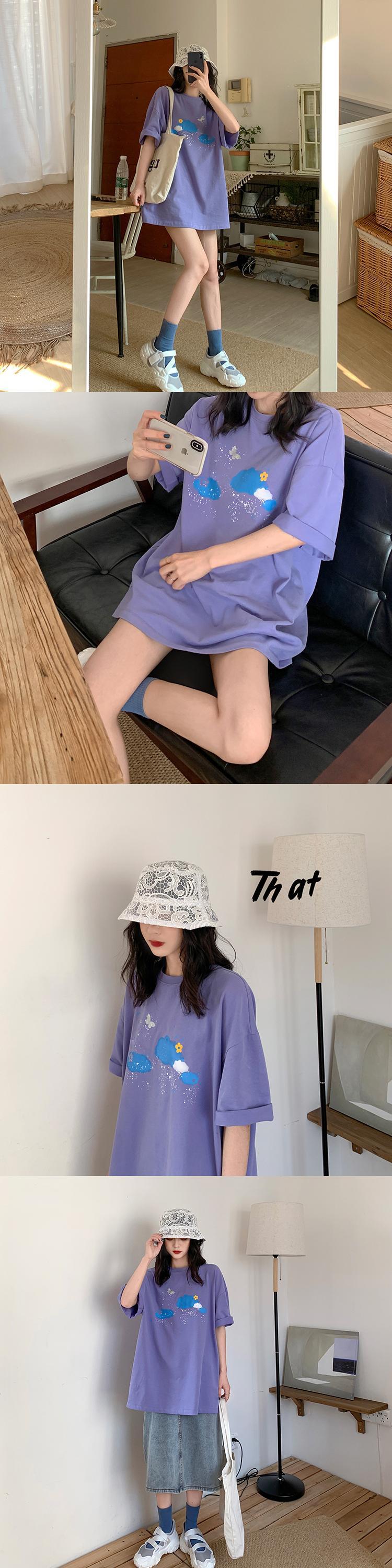 Butterflyデザイン プリント柄Tシャツ パープル YY-ファッション703329823
