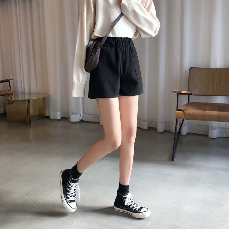 オータムウィンターハイウェストウェストブラックショーツ カジュアルパンツ 秋物 冬物 ブルマー YY-ファッション18440604948
