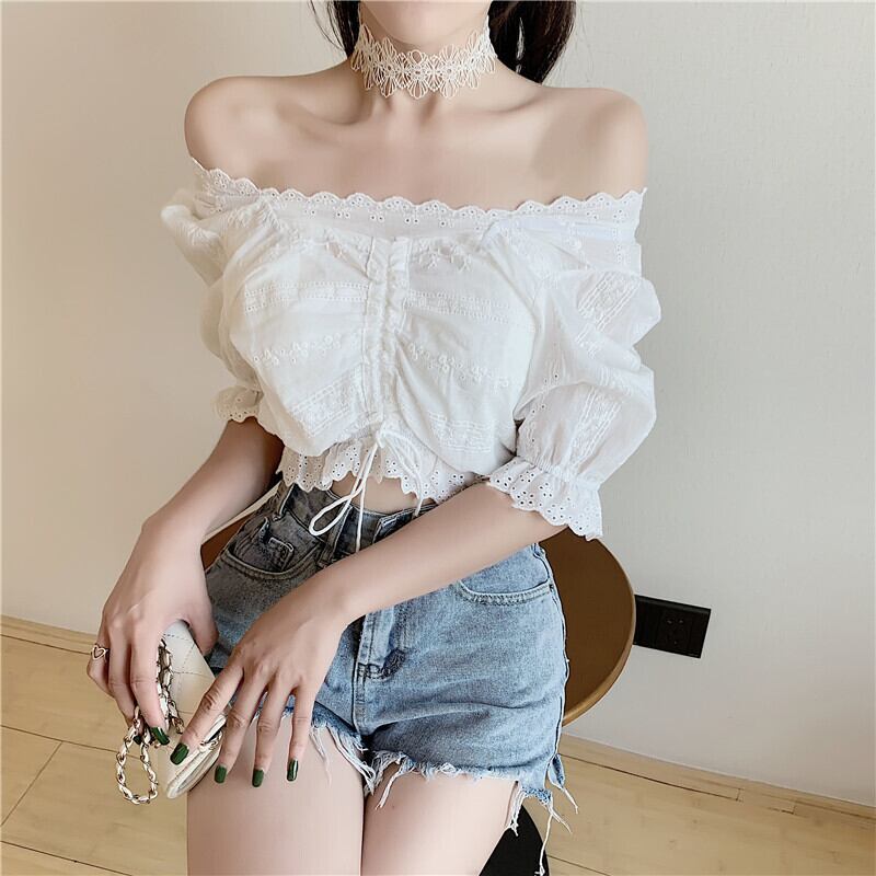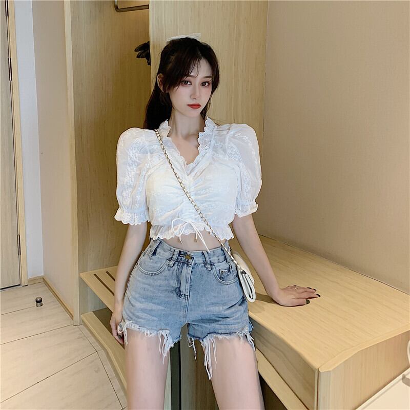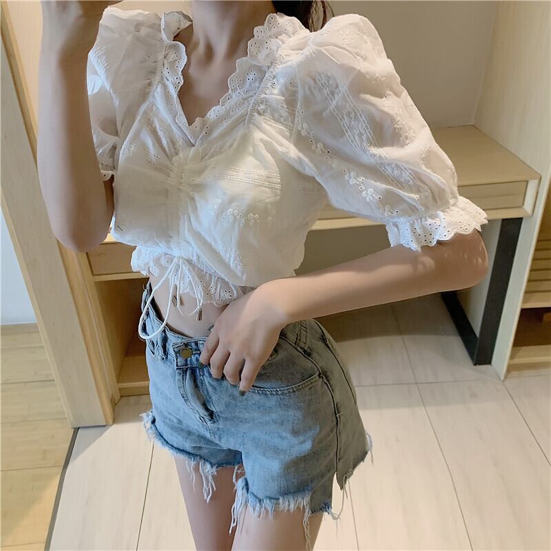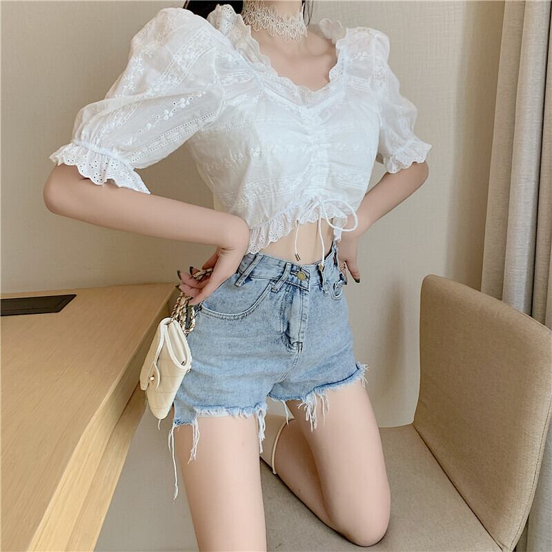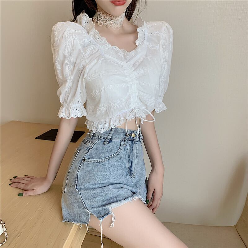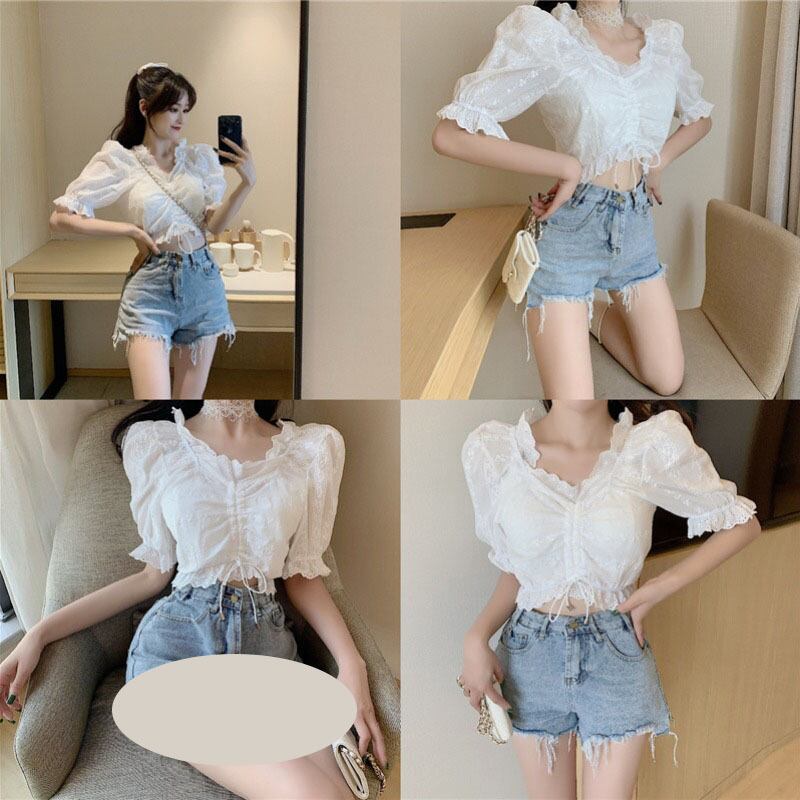 スリーブカラーショート半袖トップス レディーススプリングギャザーシャツ ハーフスリーブ 春物 スクウェア YY-ファッション93513832972