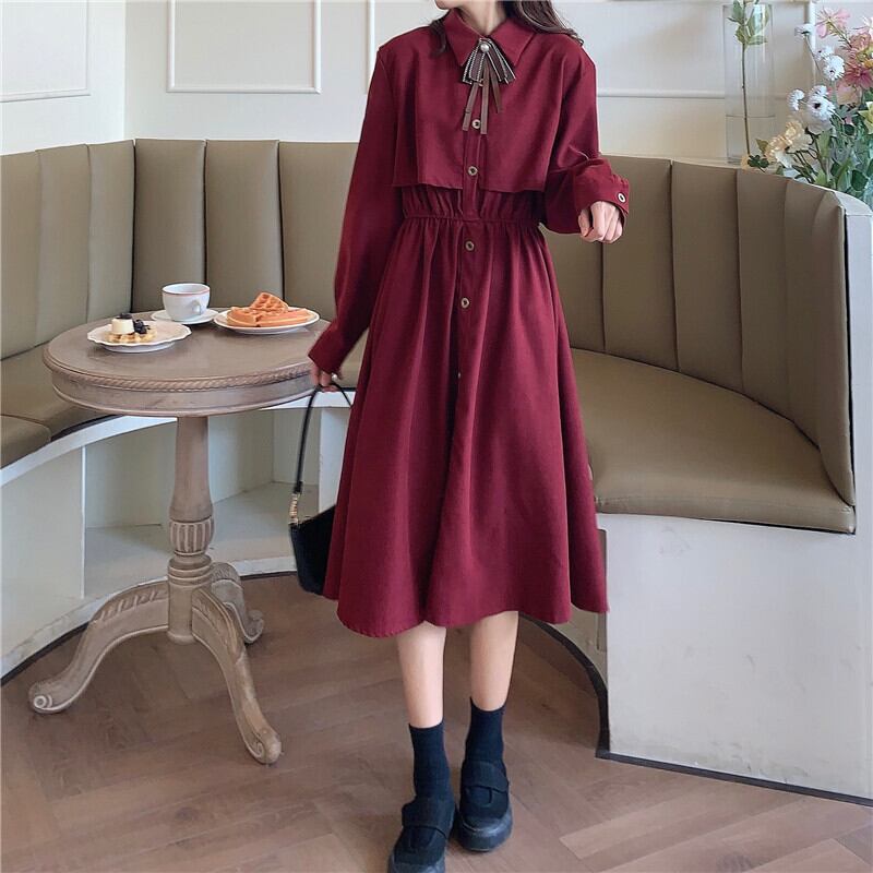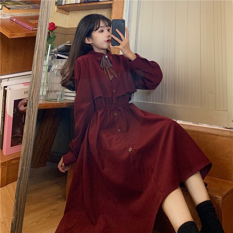 スタンダードドレス レッドスカート レトロ YY-ファッション39127671141