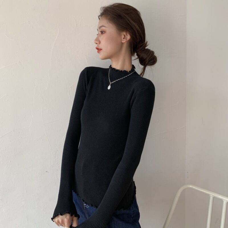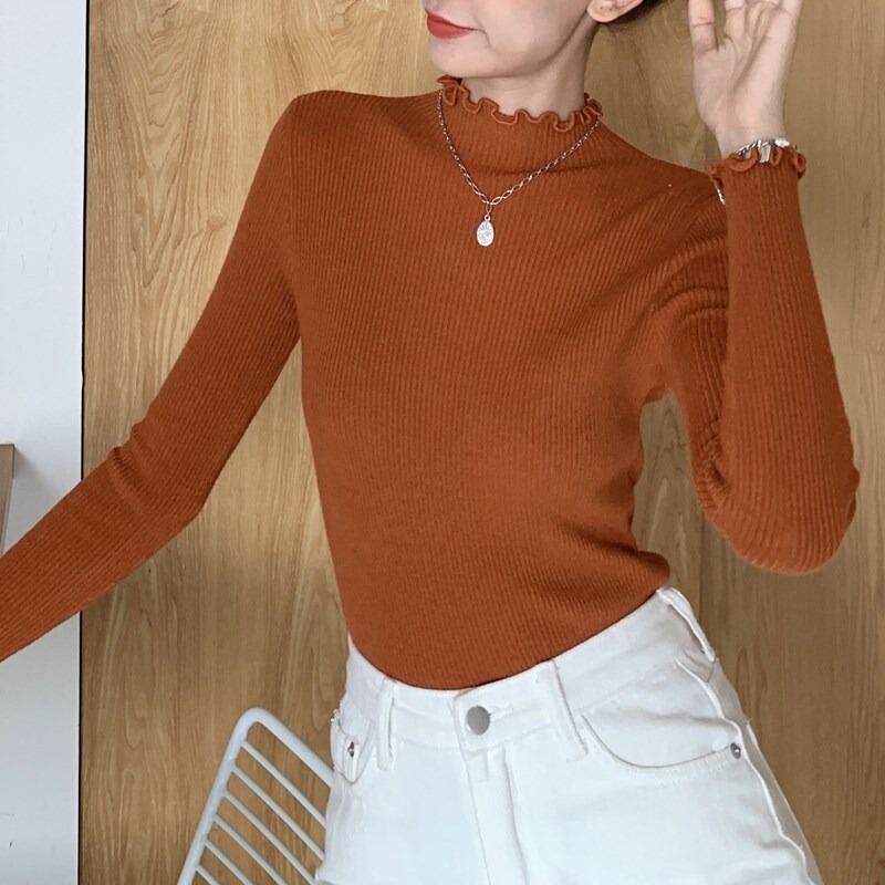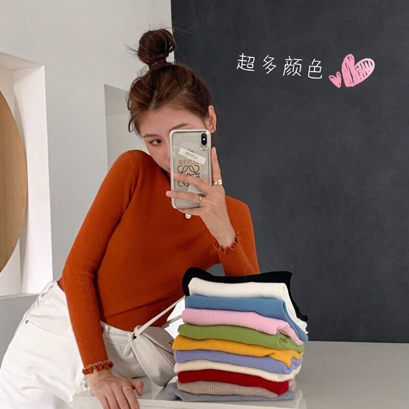 カラーカジュアルニットセーター レディーススプリングソリッド 長袖スリーブTシャツ トップス ロング 春物 ソリッドカラー YY-ファッション53511281437