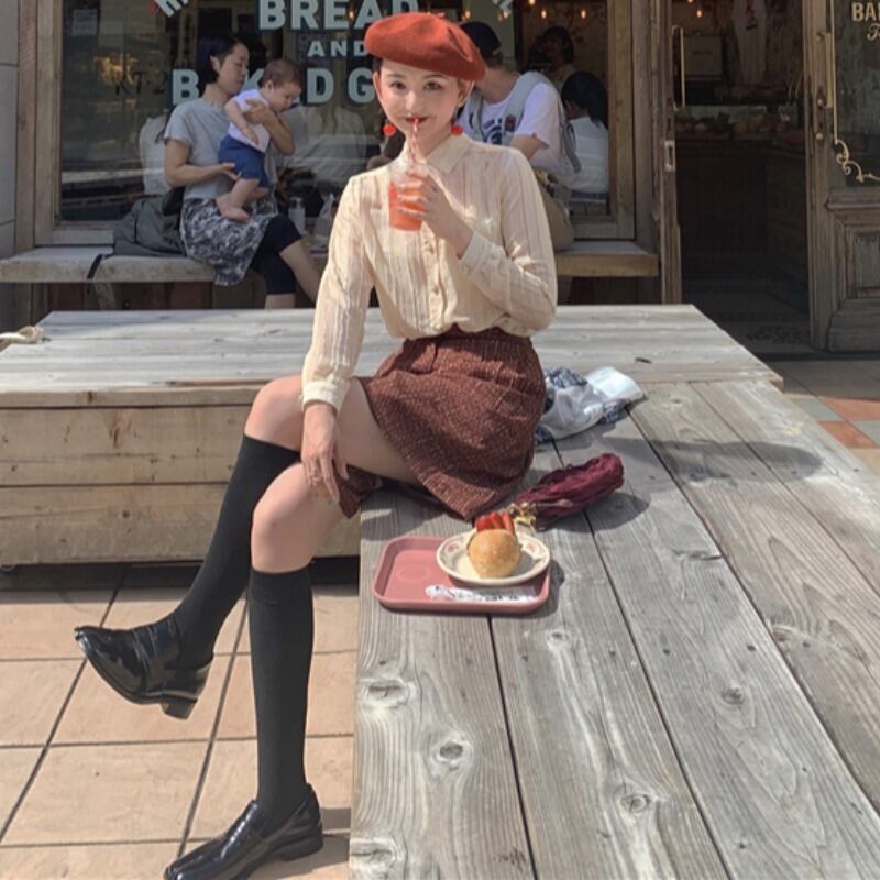スプリングスタンダードストライプブラウス ハイウェストパンツ レースジャケット レディース レッド レトロ 刺繍 春物 YY-ファッション99209651271