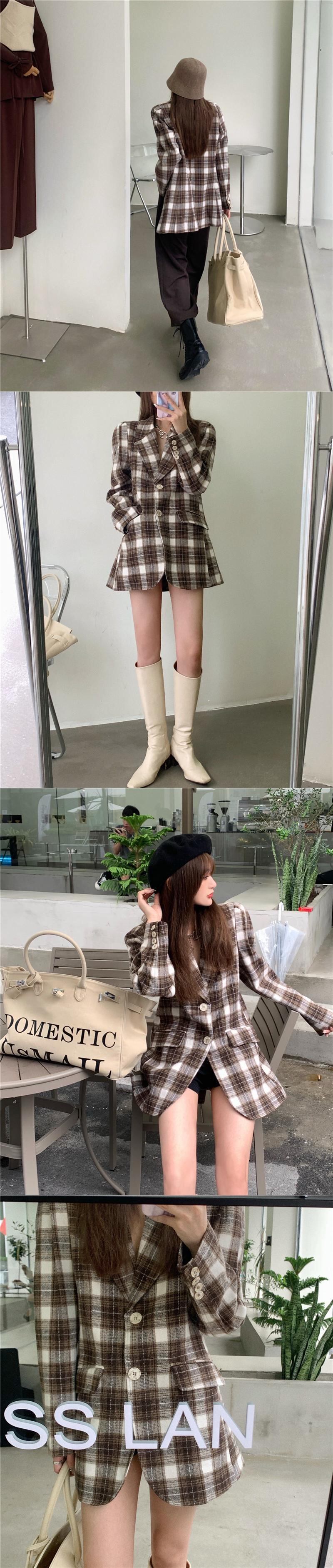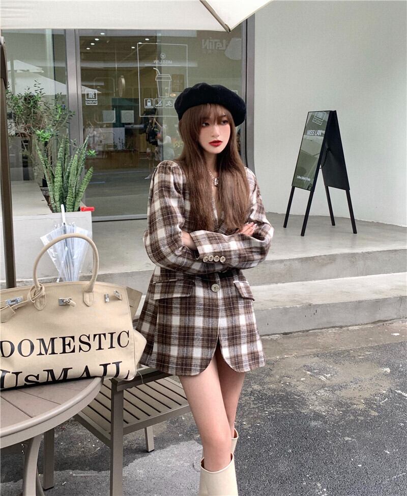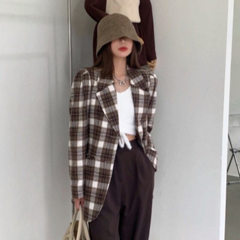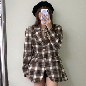 ジャケット スタンダード格子柄スタイルロングルーズスプリング レトロ 春物 YY-ファッション37821365001