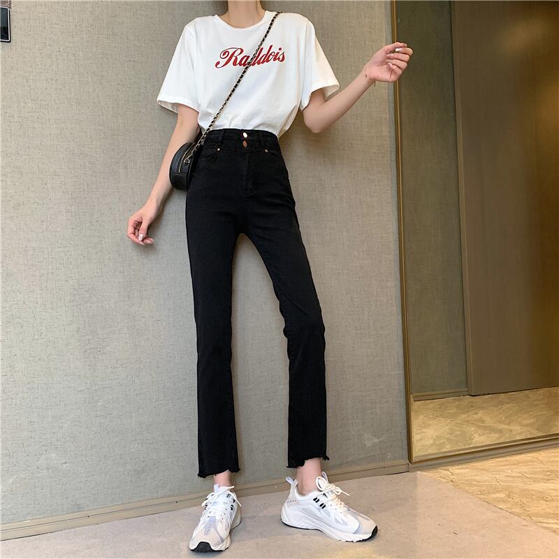 ブラックジーンズ スプリングハイウェストクロップドパンツ 春物 YY-ファッション53920346690