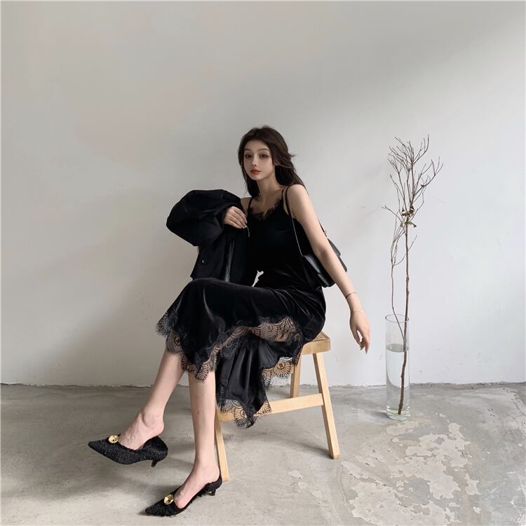 スカート ベルベットレースドレス ロングスプリング 春物 YY-ファッション22496316024