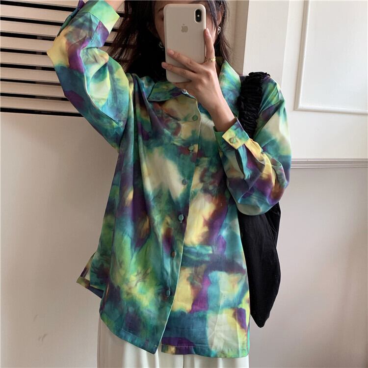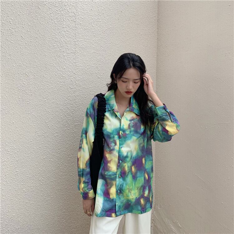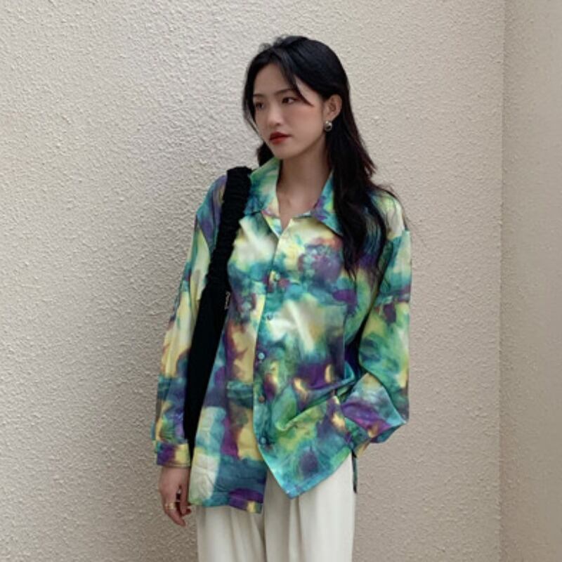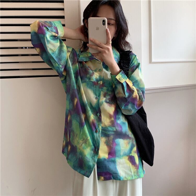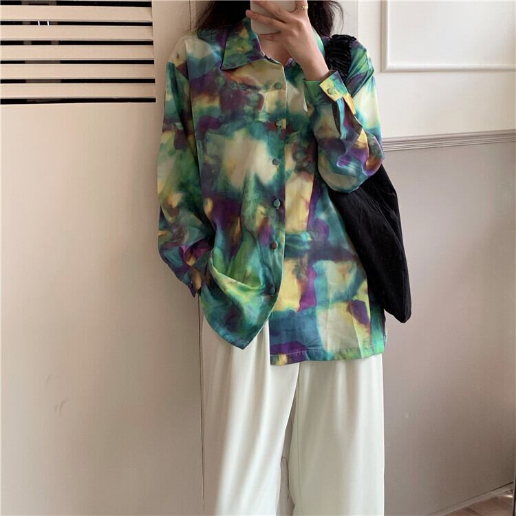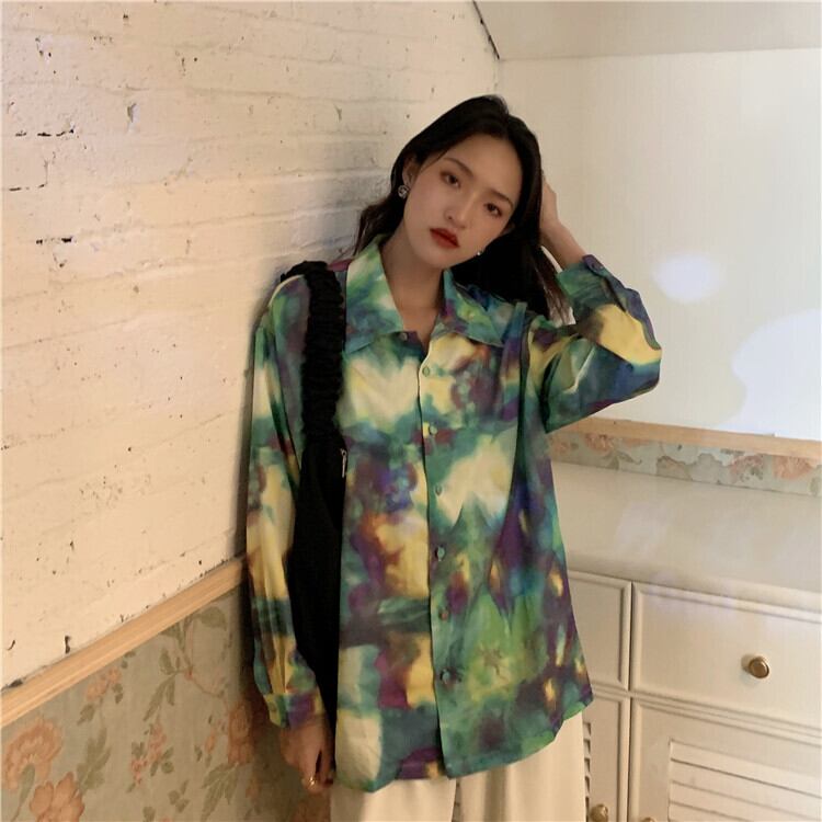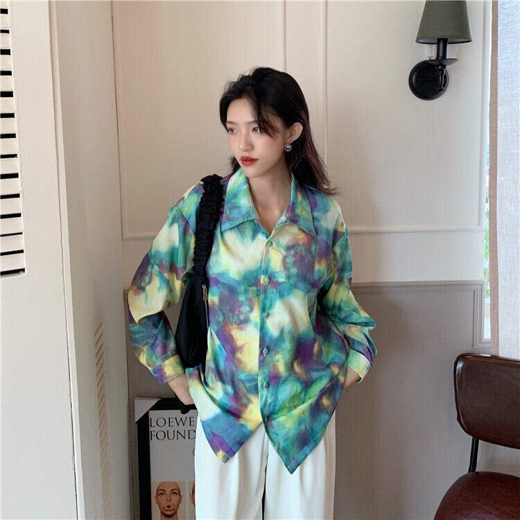 スタンダードプリントシャツ スプリングスタイルルーズトップス ロング レトロ 春物 YY-ファッション14373681396