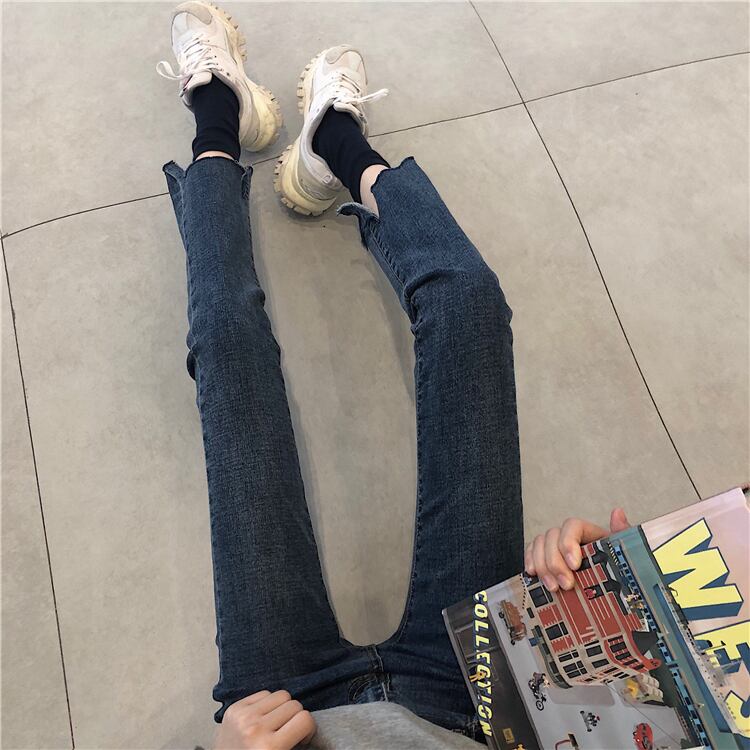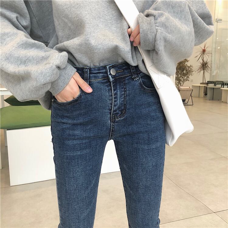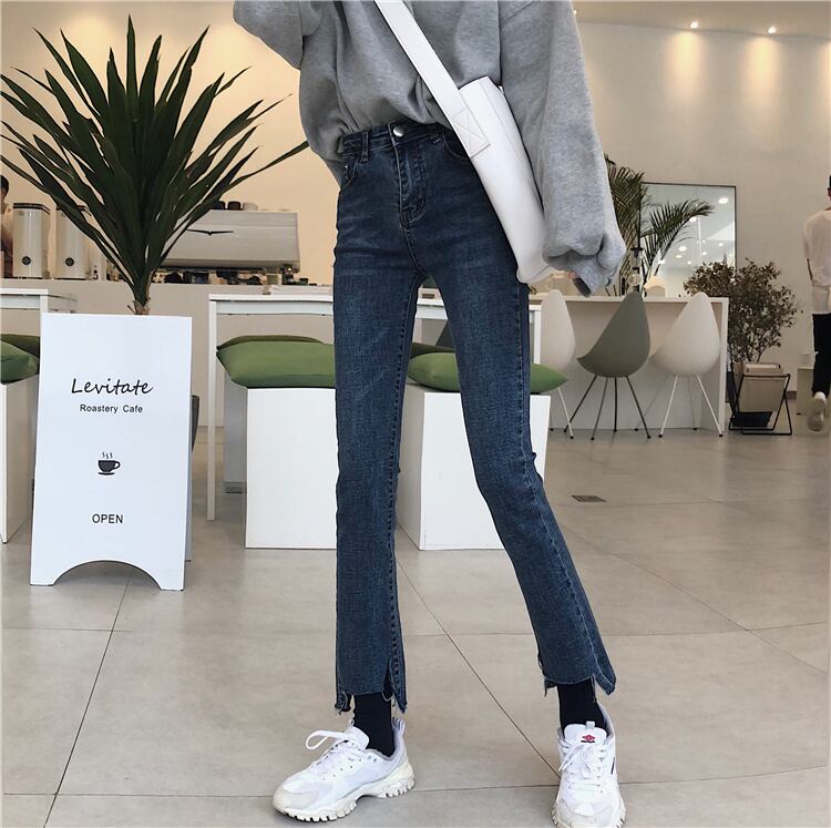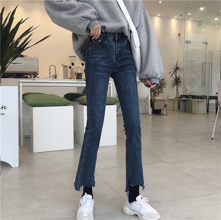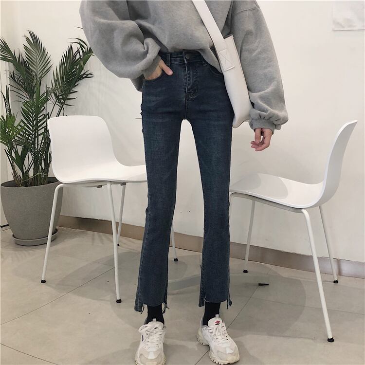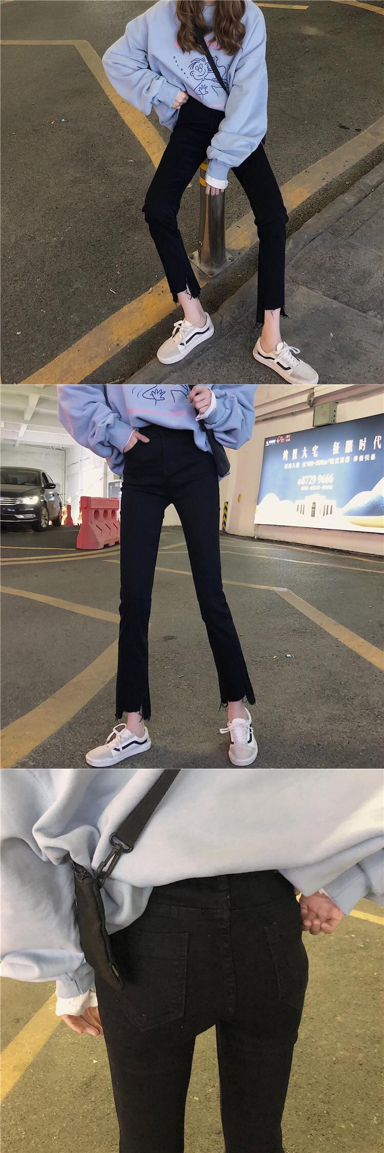 薄手ハイウェストクロップドサイドジーンズ レース レースアップ YY-ファッション80495740611