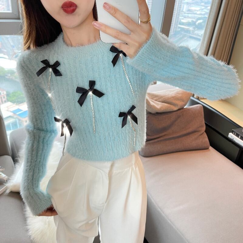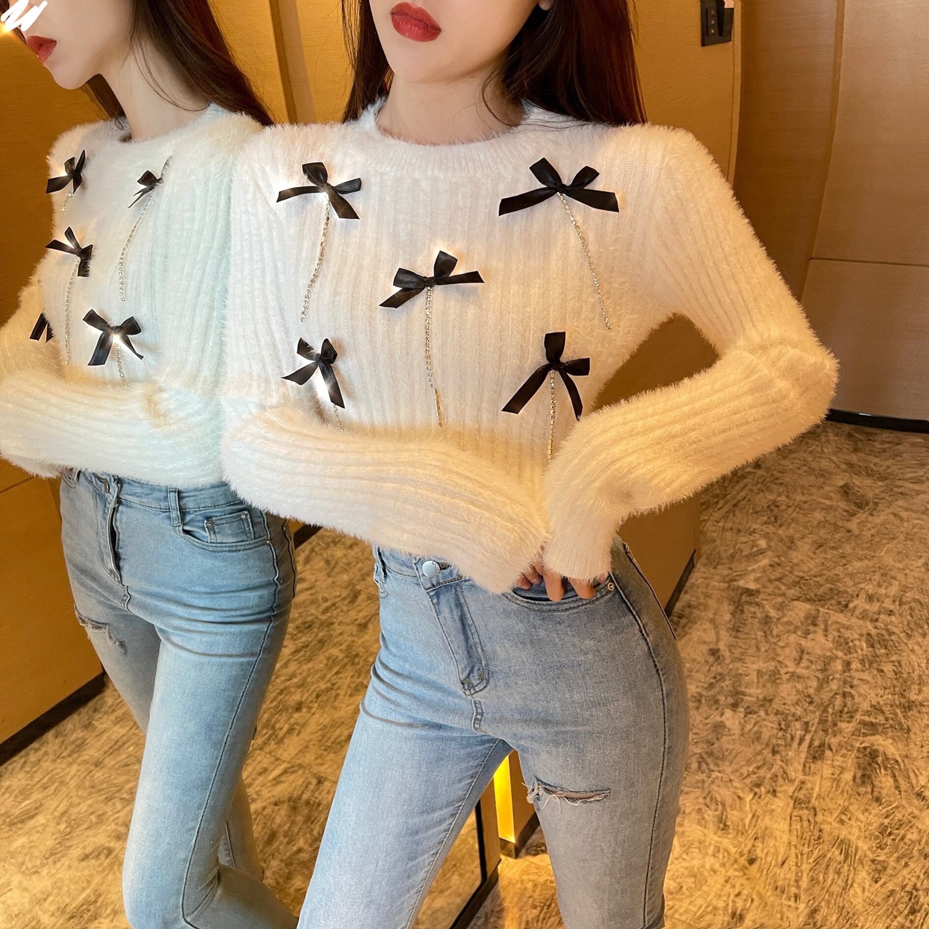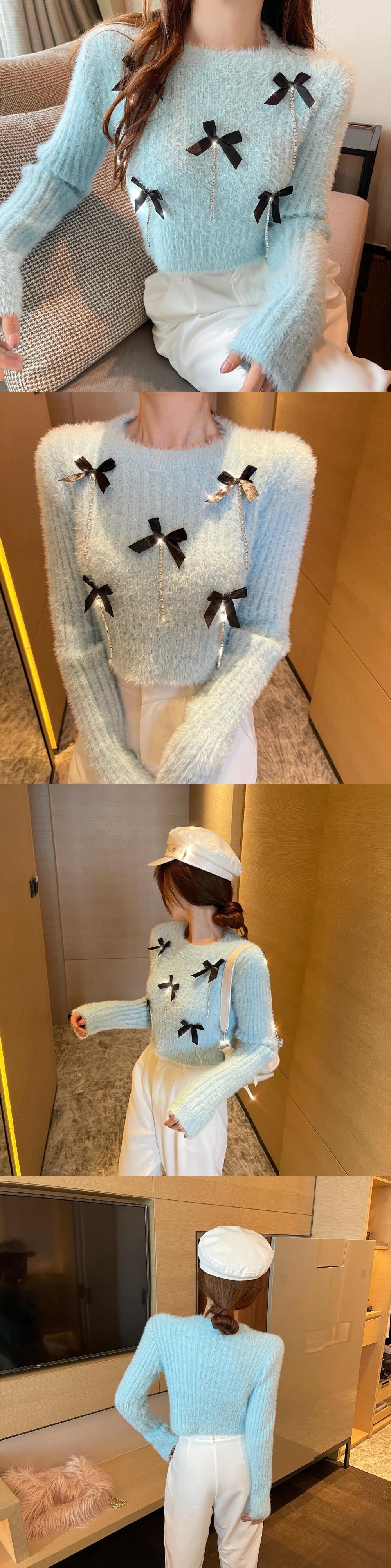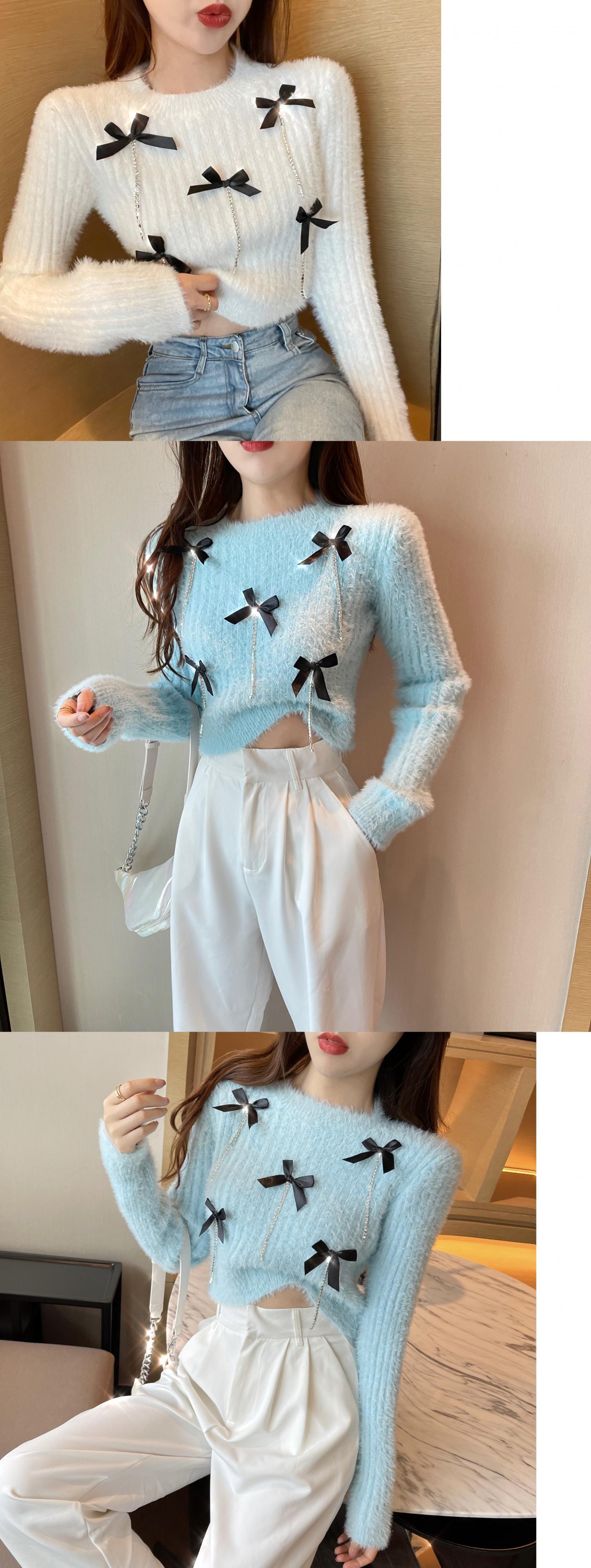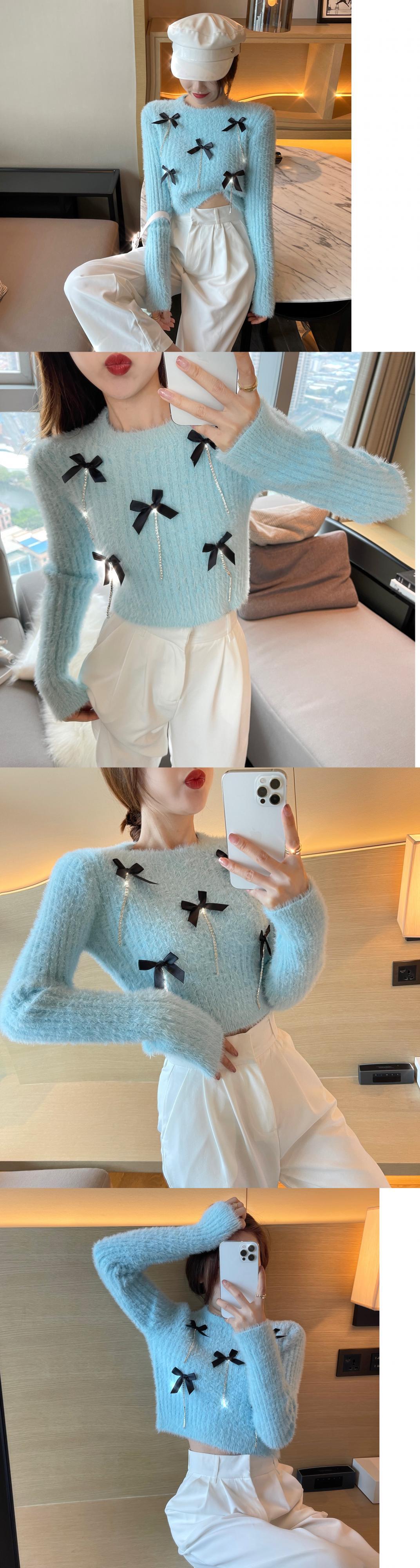 セーター スプリングショートトップス レディース ロング リボン 春物 YY-ファッション95947066059