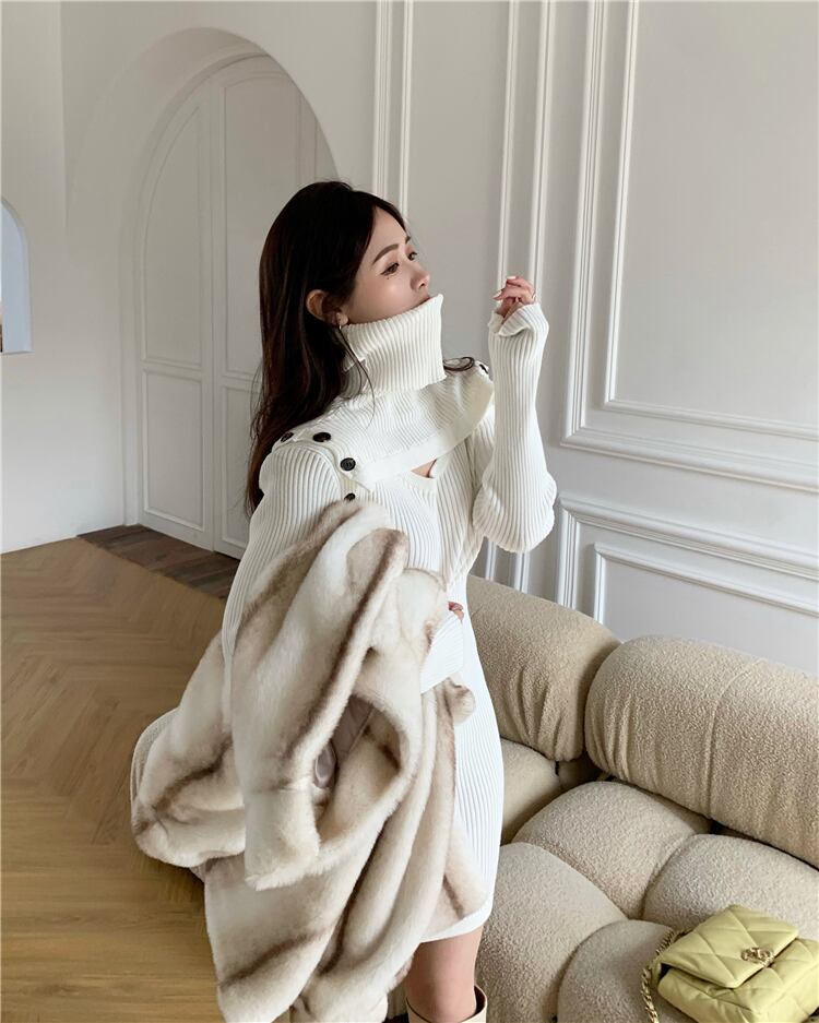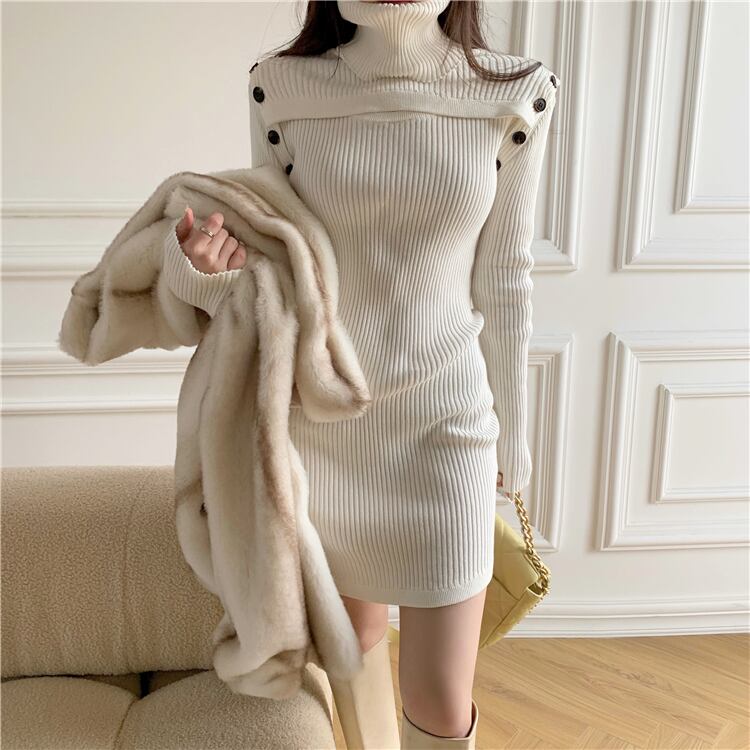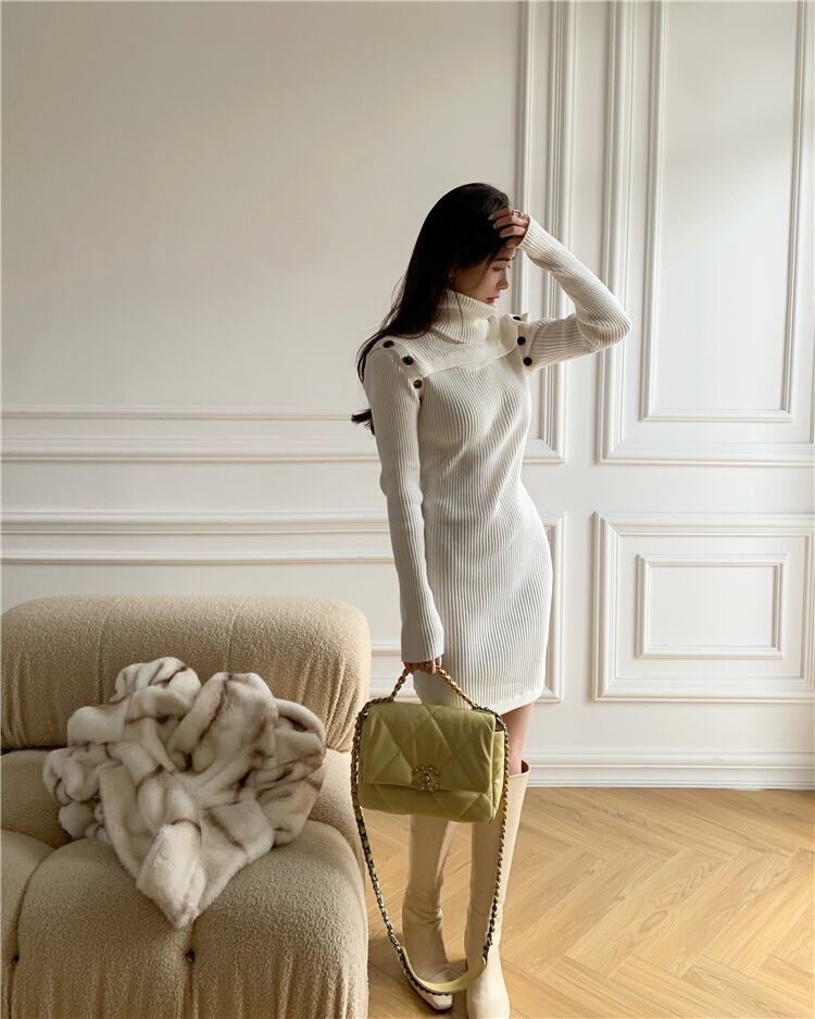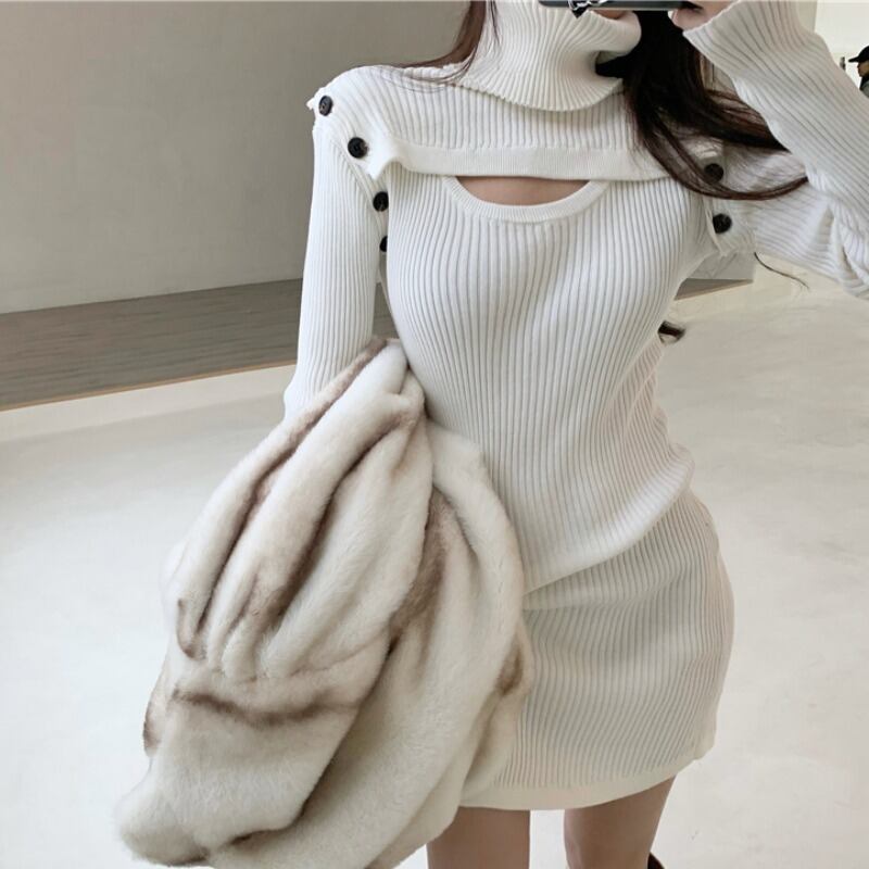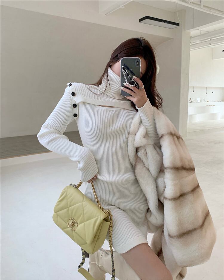 スプリングニットドレス スリムウェストセーター スカート ホワイト 春物 YY-ファッション22132609506