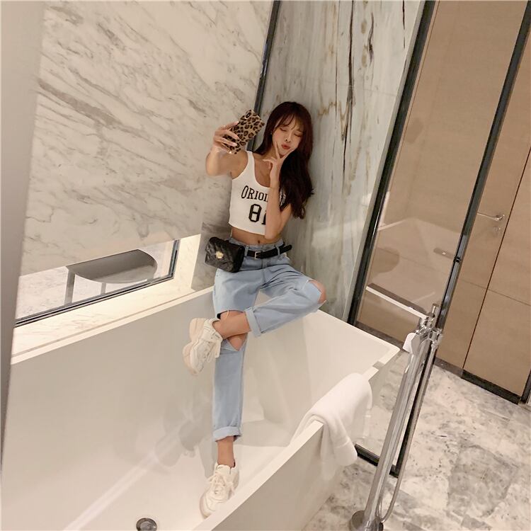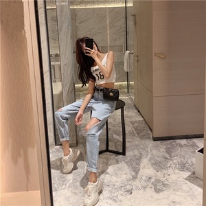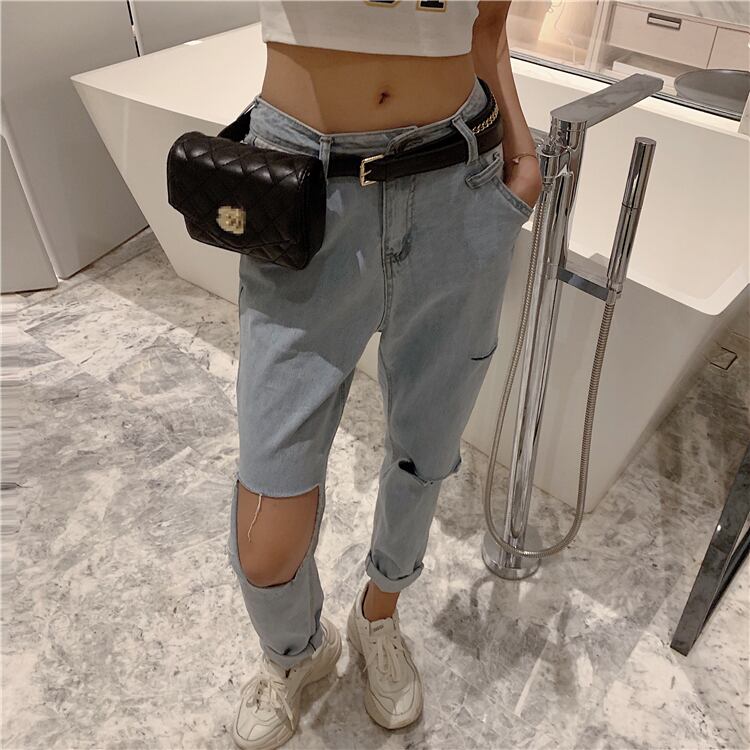スプリングオータムスタイルルーズハイウェストウェストジーンズ パンツ 春物 秋物 YY-ファッション18432192573