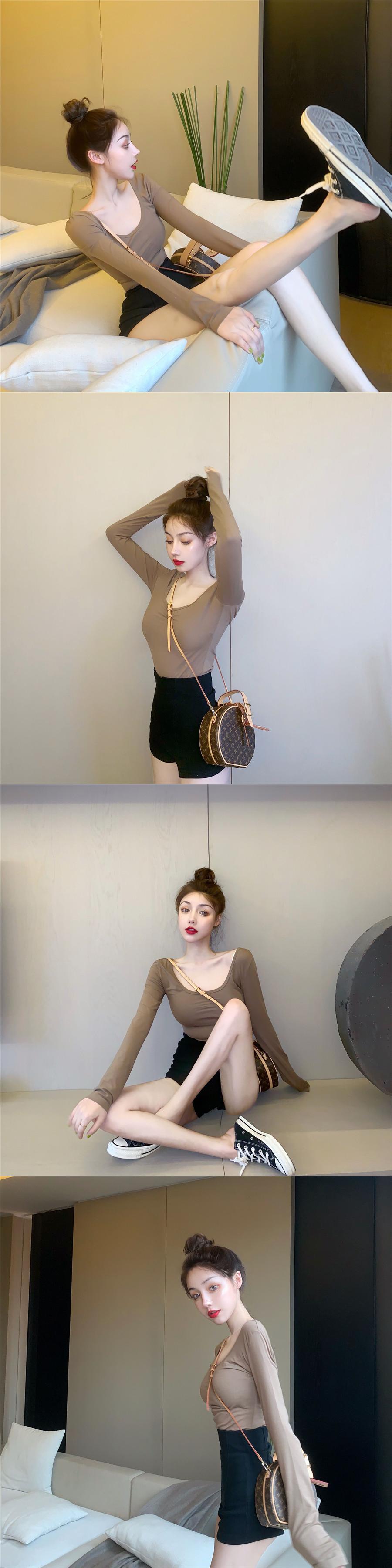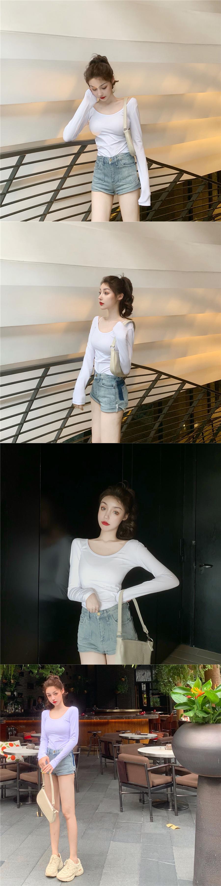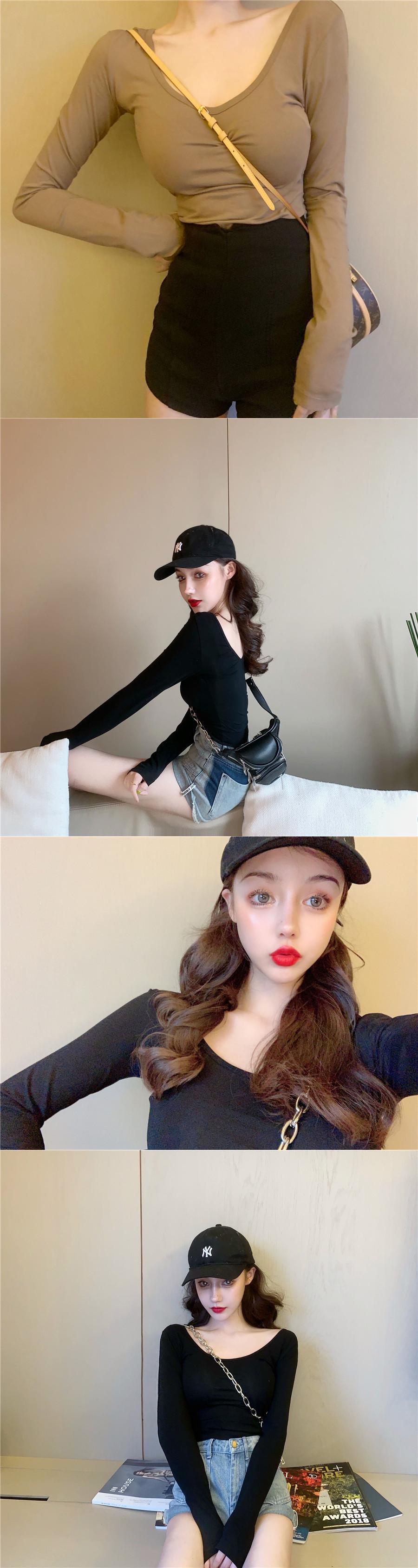 バックTシャツ レディーススプリングスタイルVネックショートソリッド カラートップス ロング 春物 ソリッドカラー YY-ファッション86034176153