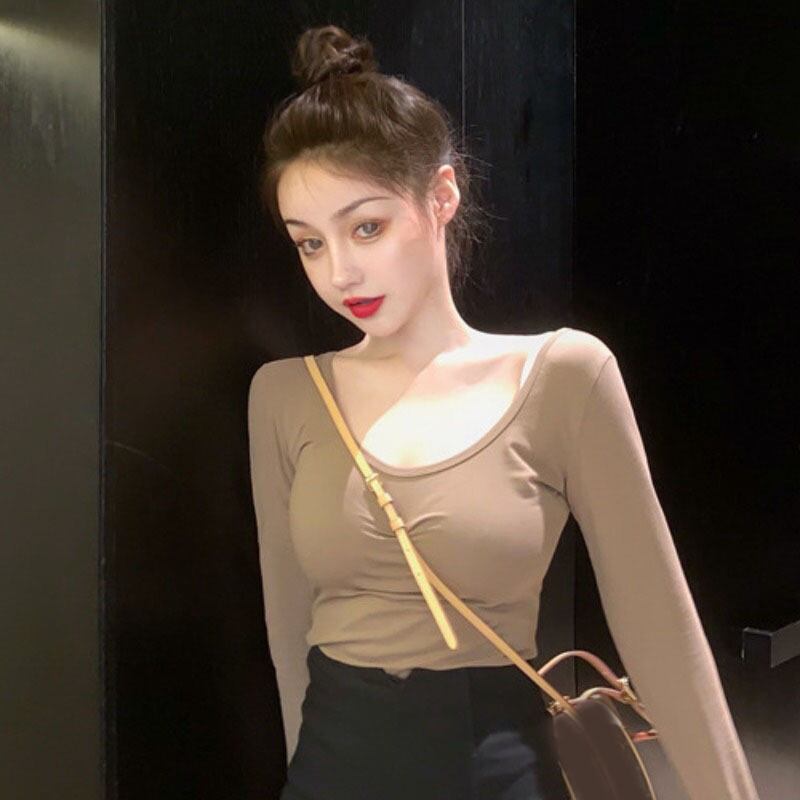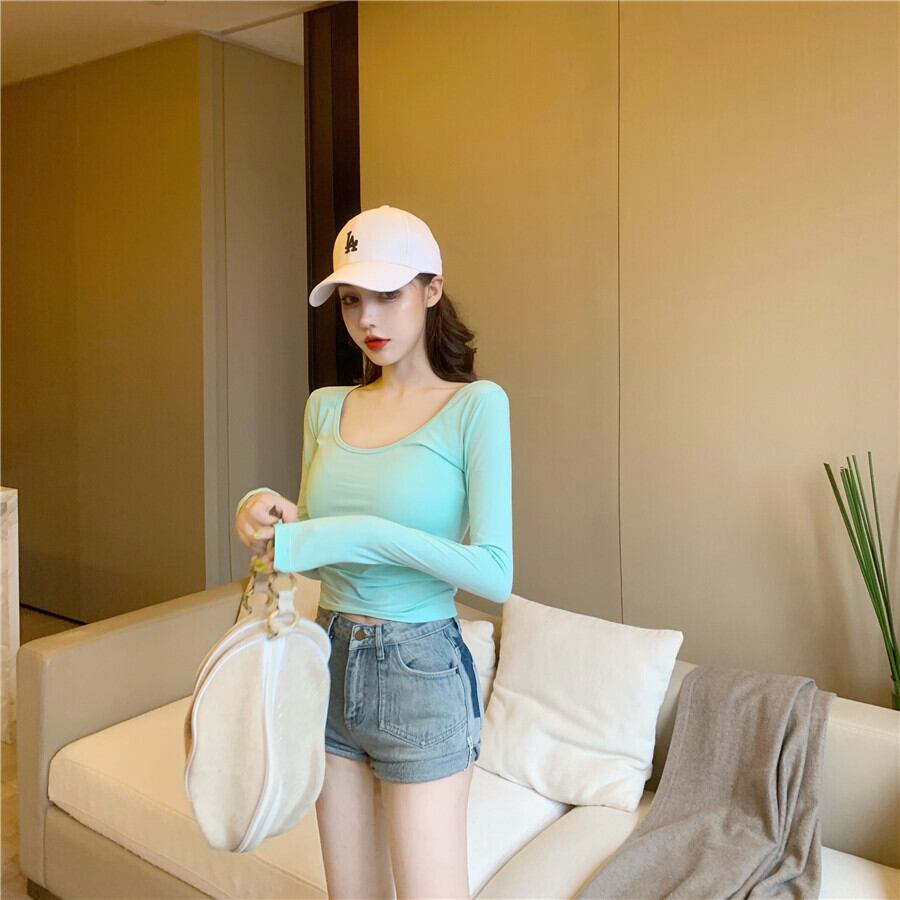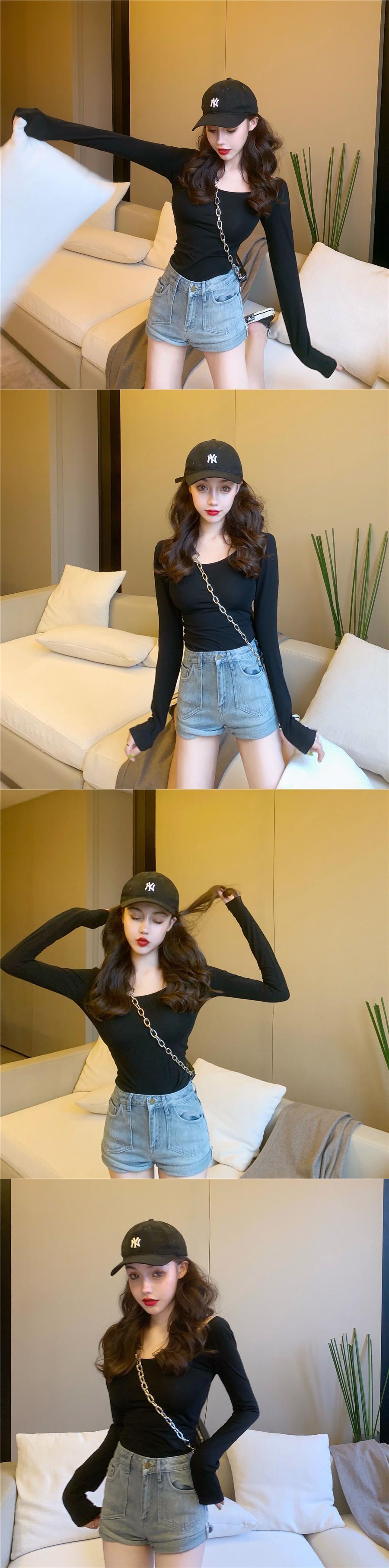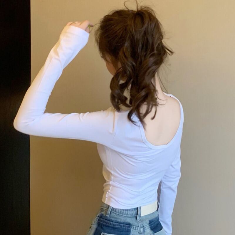 バックTシャツ レディーススプリングスタイルVネックショートソリッド カラートップス ロング 春物 ソリッドカラー YY-ファッション86034176153