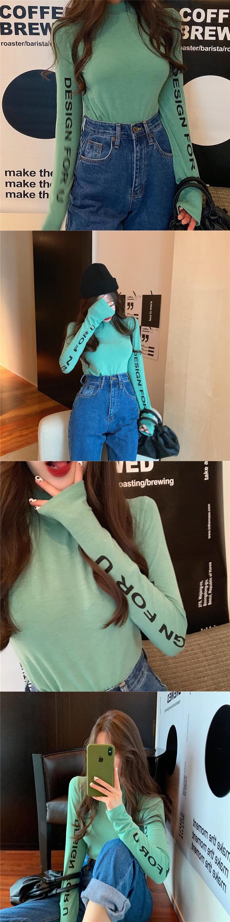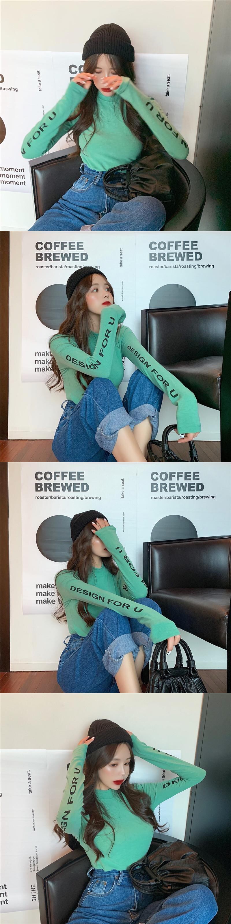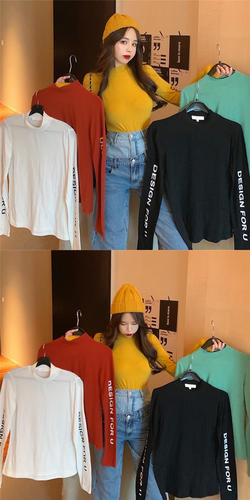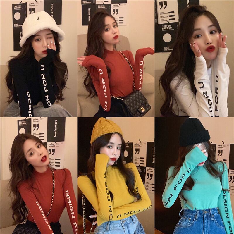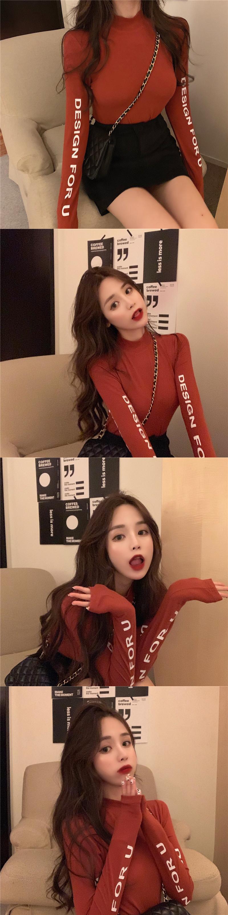スプリングカジュアルカラースリム長袖スリーブシャツ ニットトップス レディース ロング 春物 YY-ファッション93392909455