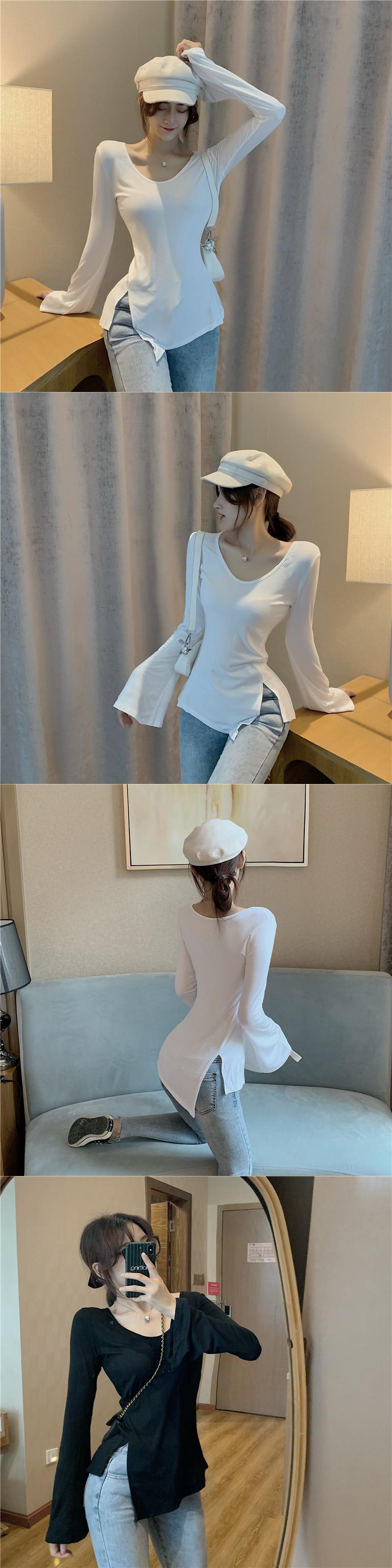 VネックスリムスリーブTシャツ スプリングカジュアルトップス 春物 YY-ファッション23920527783
