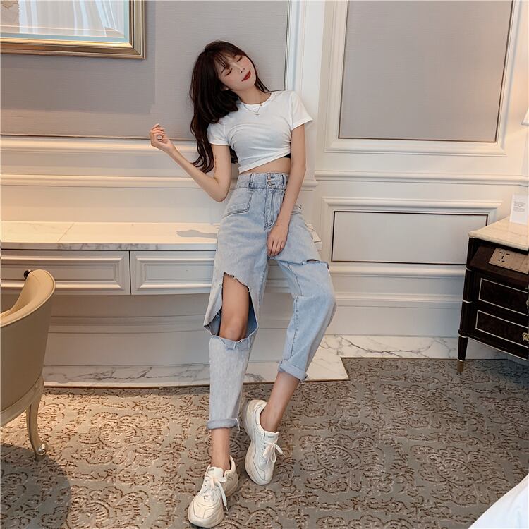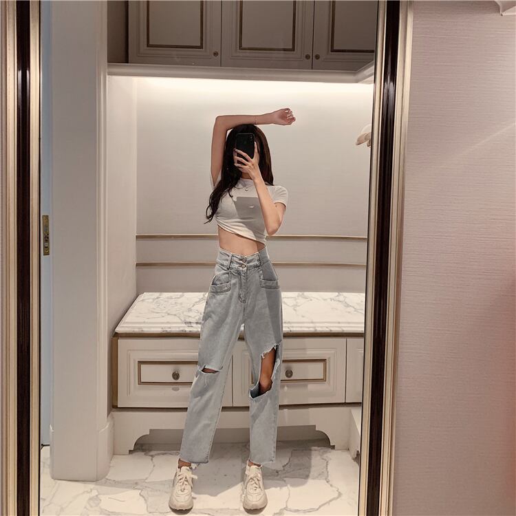 ハイウェストウェストパンツ ルーズジーンズ YY-ファッション95551568450