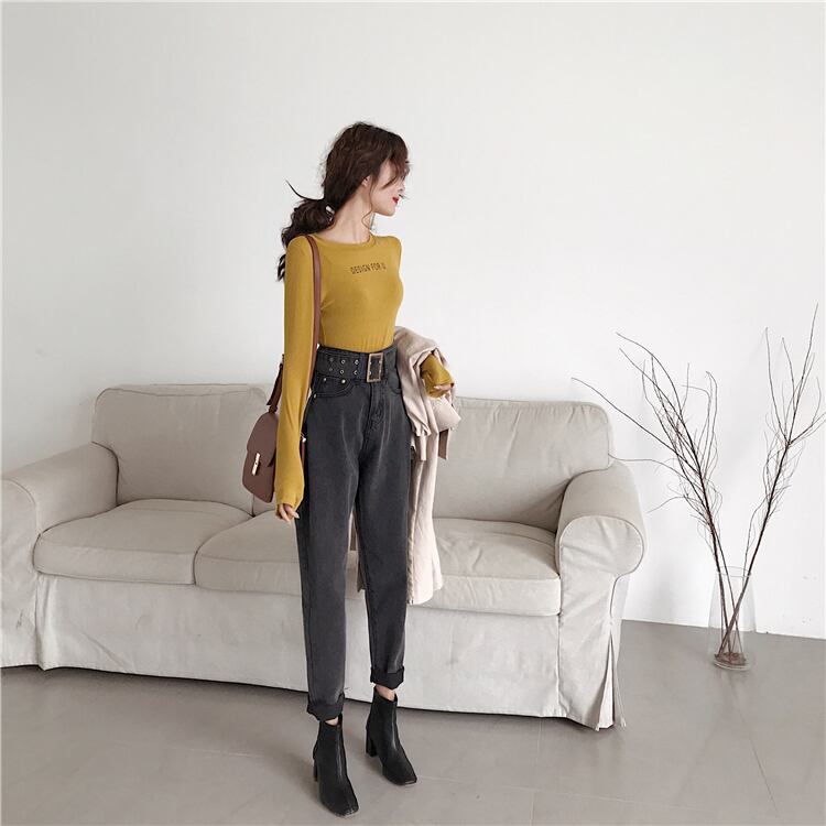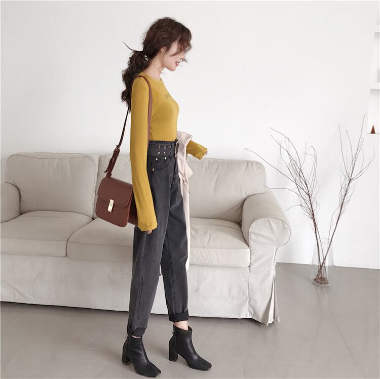ハイウェストウェストルーズジーンズ パンツ ベルト ハーネス YY-ファッション30183411714