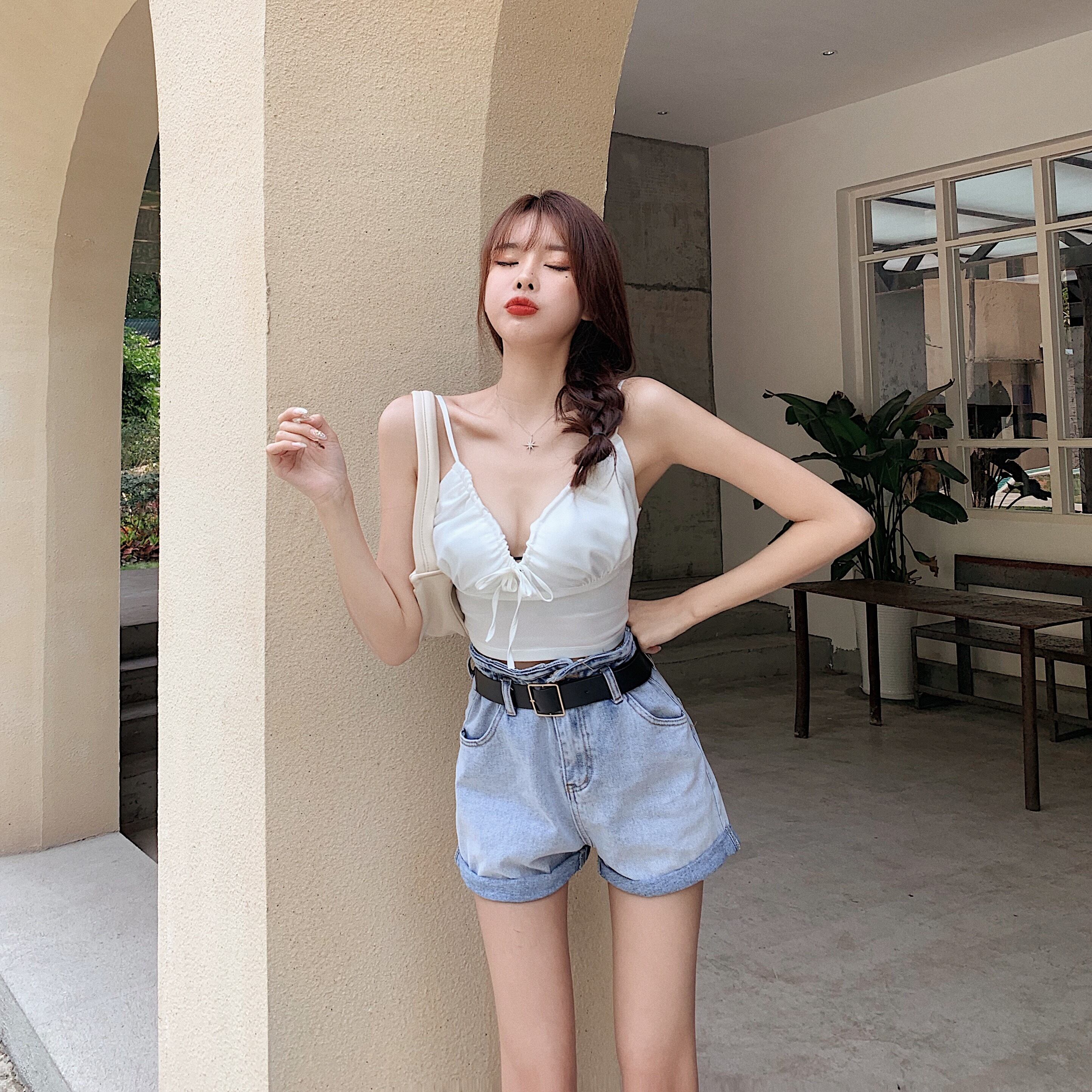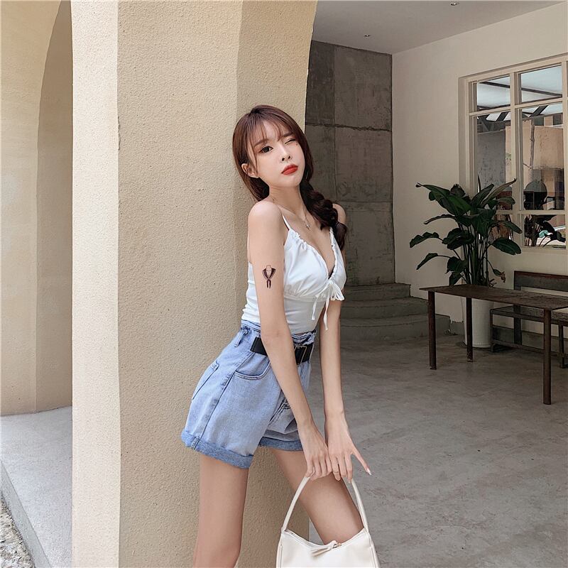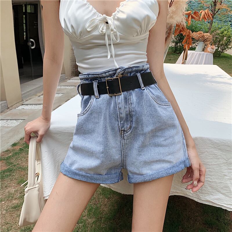 スタンダードハイウェストウェストジーンズ レッドルーズ薄手ショーツ レトロ ブルマー YY-ファッション35328958512