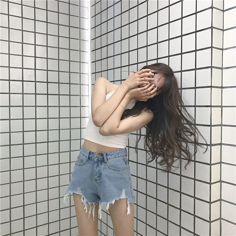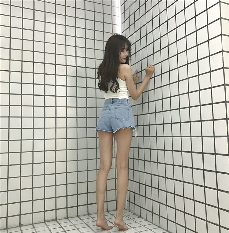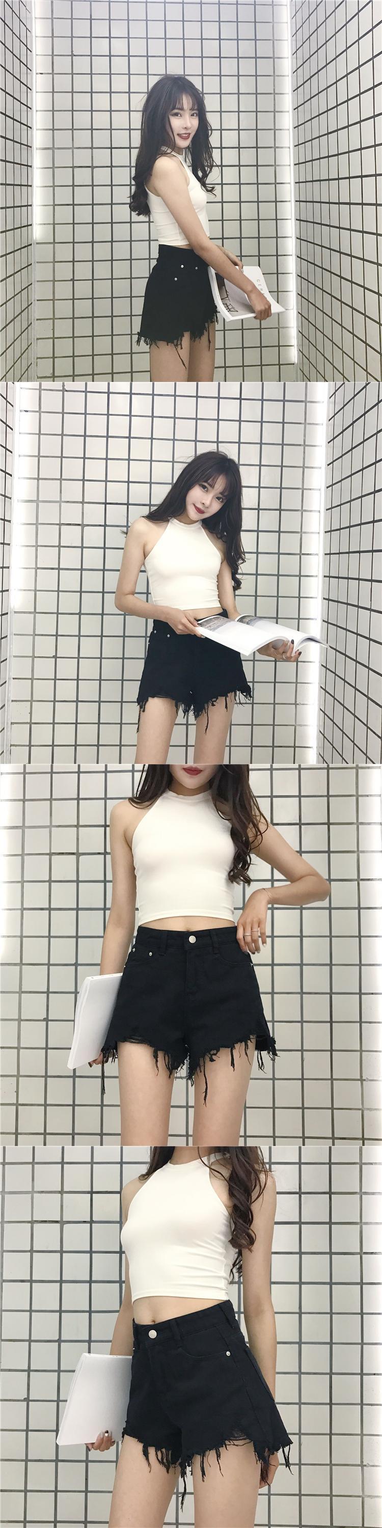 ショーツ ブラックブルーハイウェストウェストルーズパンツ ワイドレッグ ブルマー ワイドパンツ YY-ファッション524586887