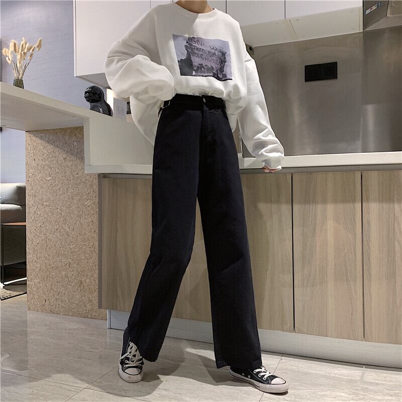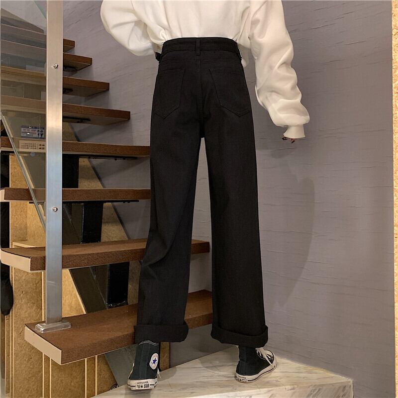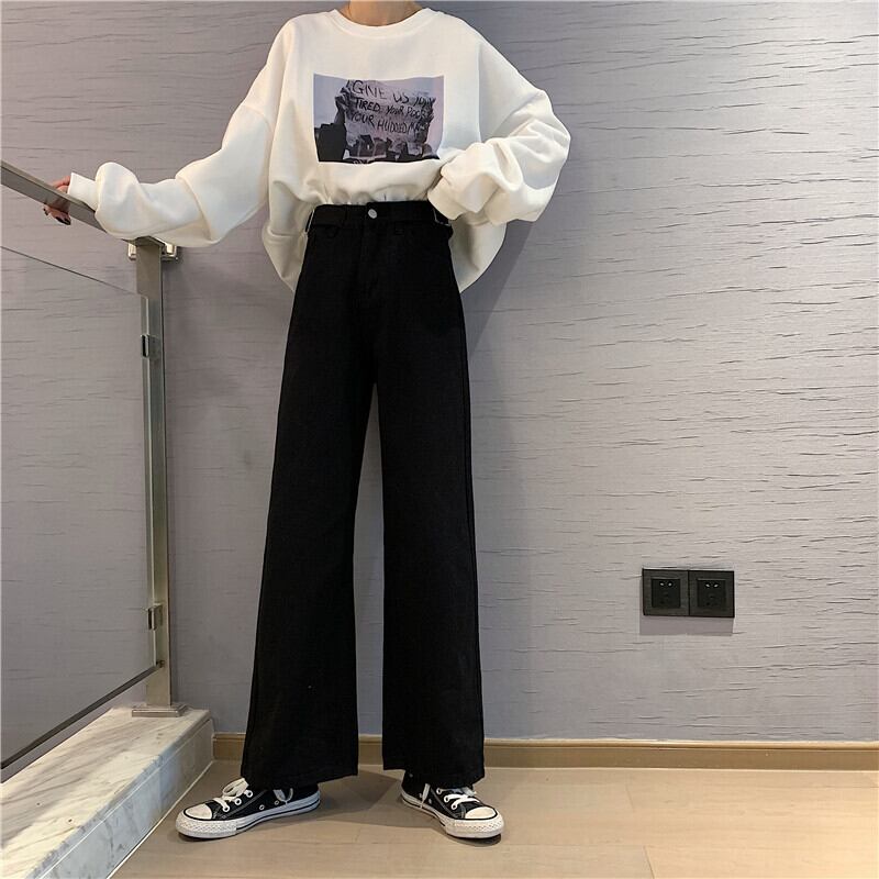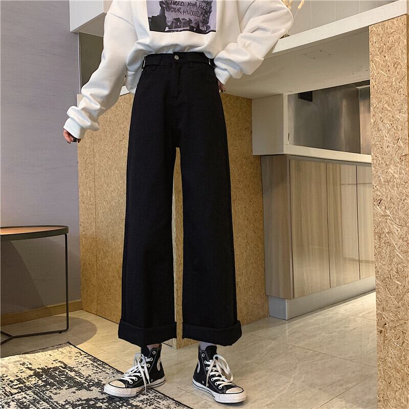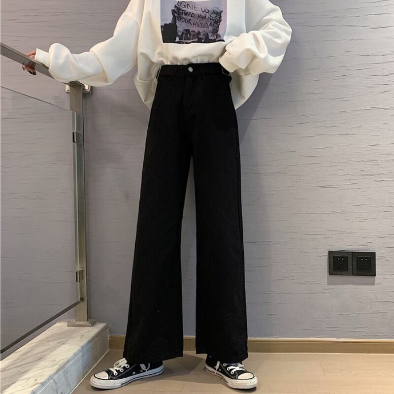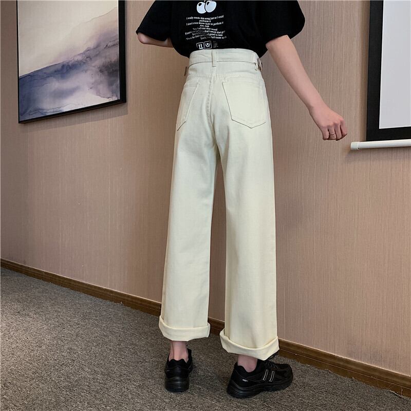 ハイウェストウェストジーンズ スプリングパンツ ルーズ薄手ワイドレッグ 春物 アジャスタブル ワイドパンツ YY-ファッション59478946510