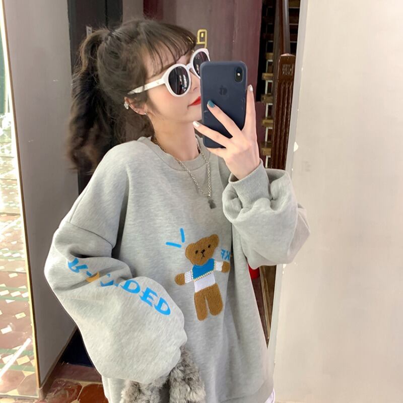 グレーセーター レッドルーズ薄手ラウンドネック長袖スリーブトップス ロング Oネック YY-ファッション28473175875