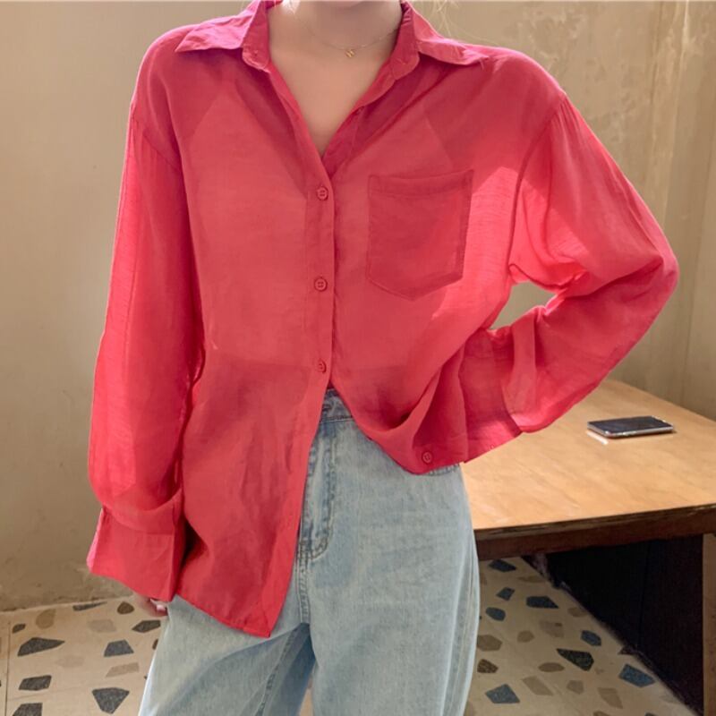ルーズホワイトシャツ スプリングオータムレースシフォン ロング 春物 秋物 YY-ファッション94128486195