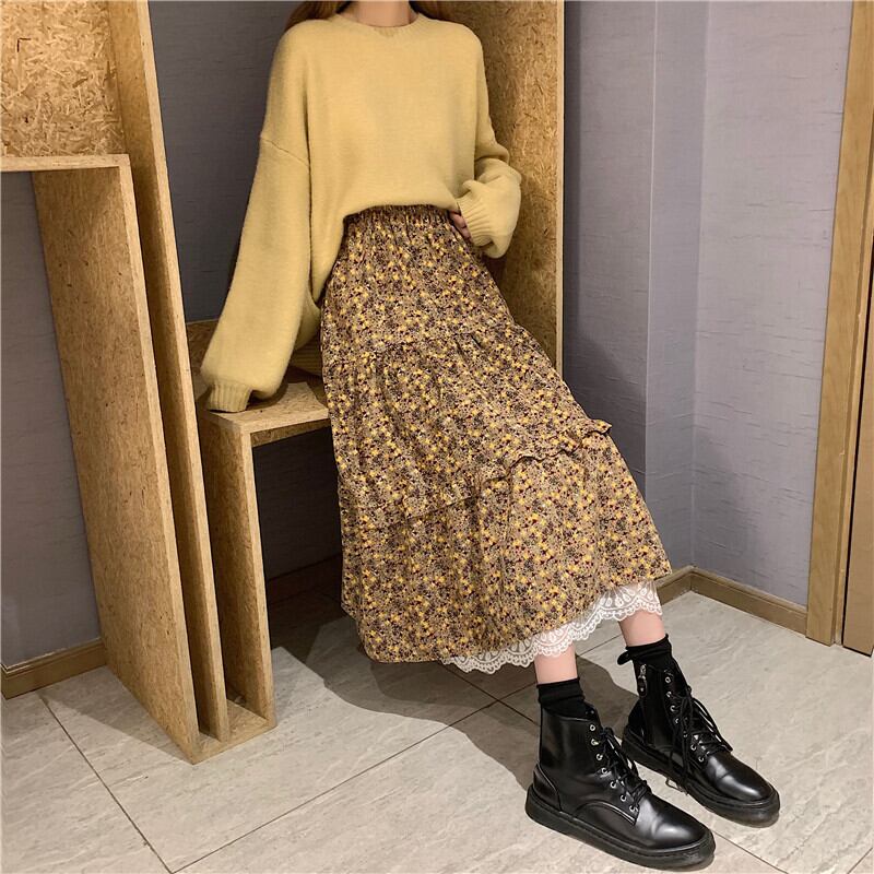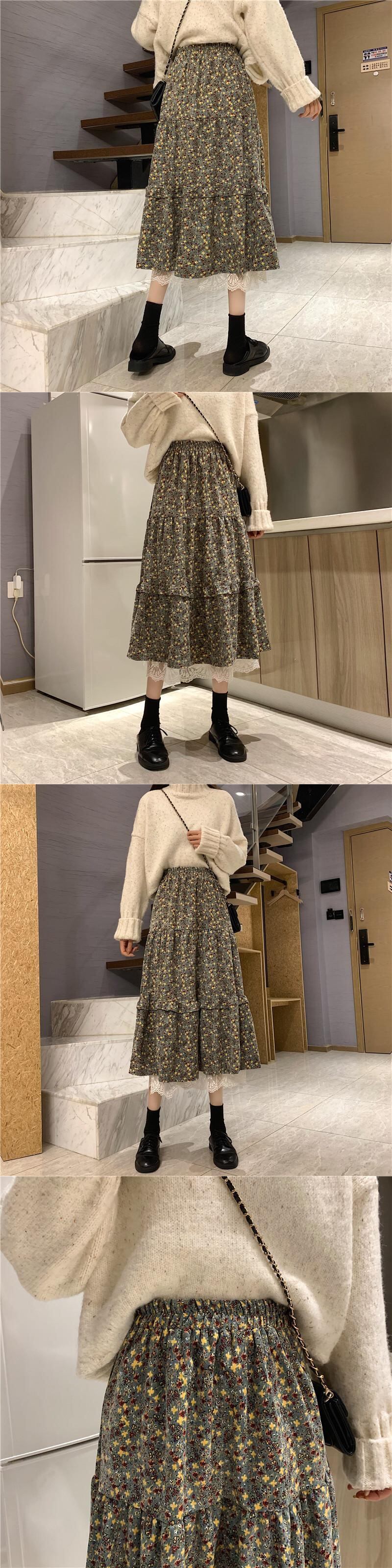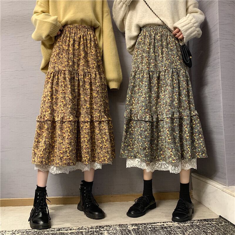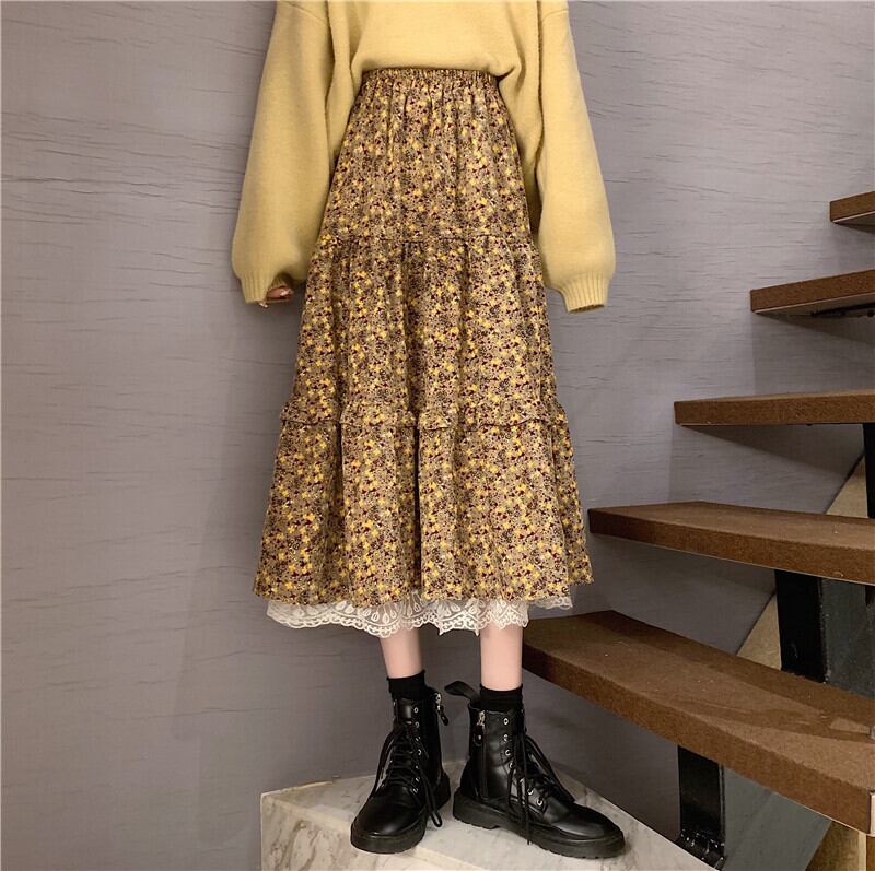 コーデュロイスカート オータムウィンターハイウェストロングスタンダードプリーツ レトロ 秋物 冬物 YY-ファッション10782352476