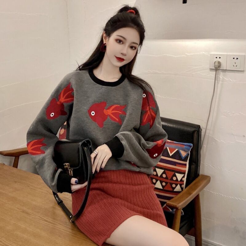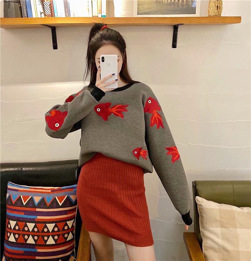 色:金魚のセーター,赤レンガのスカート
