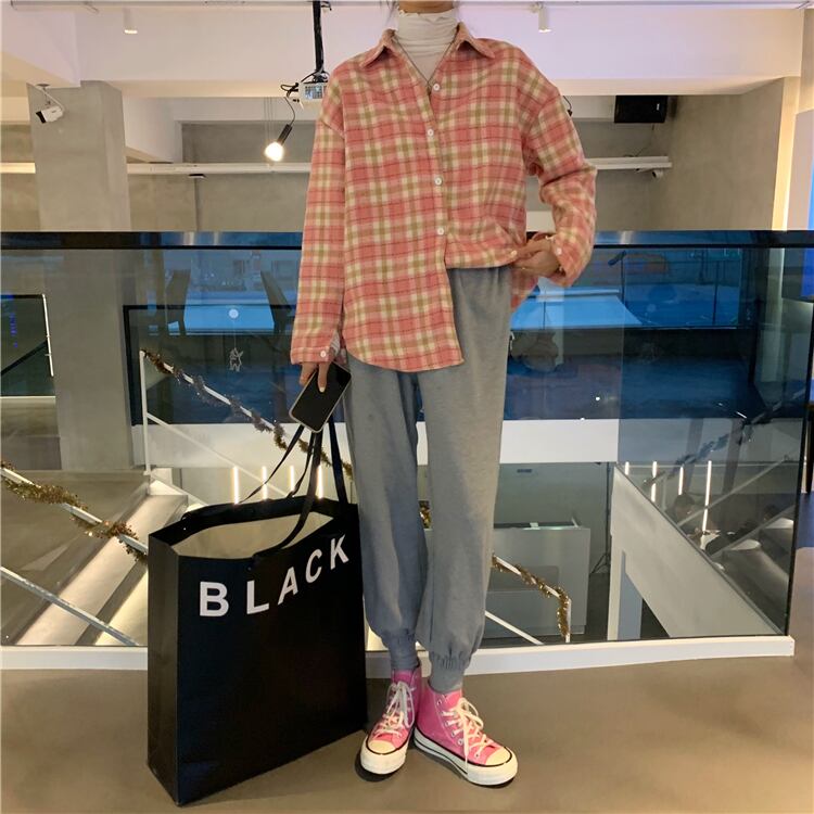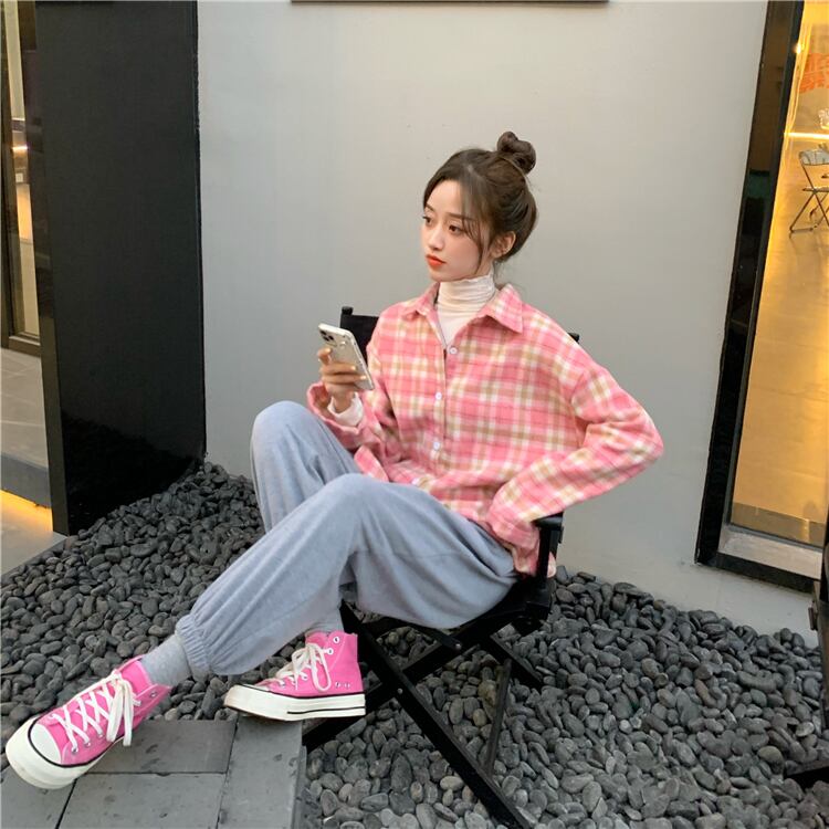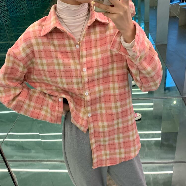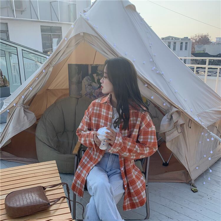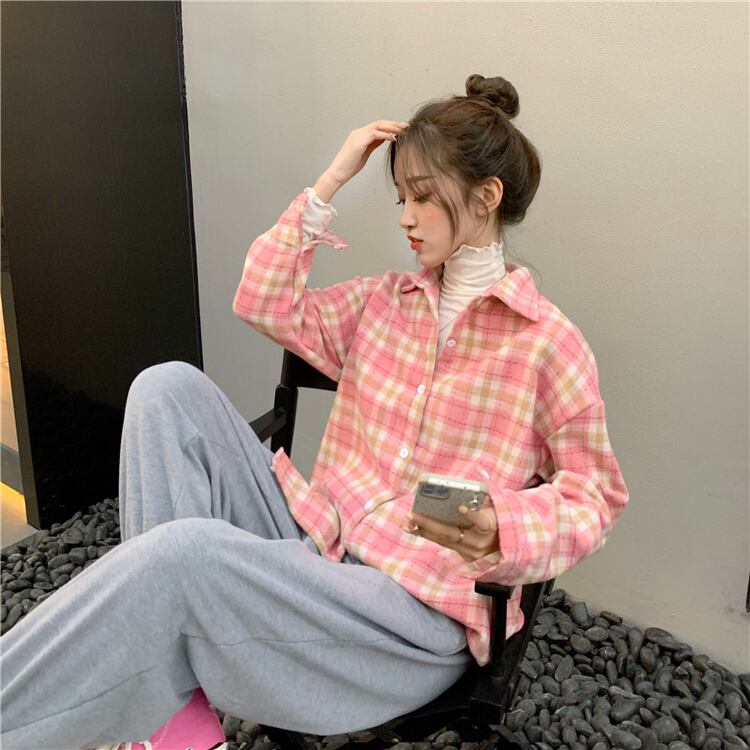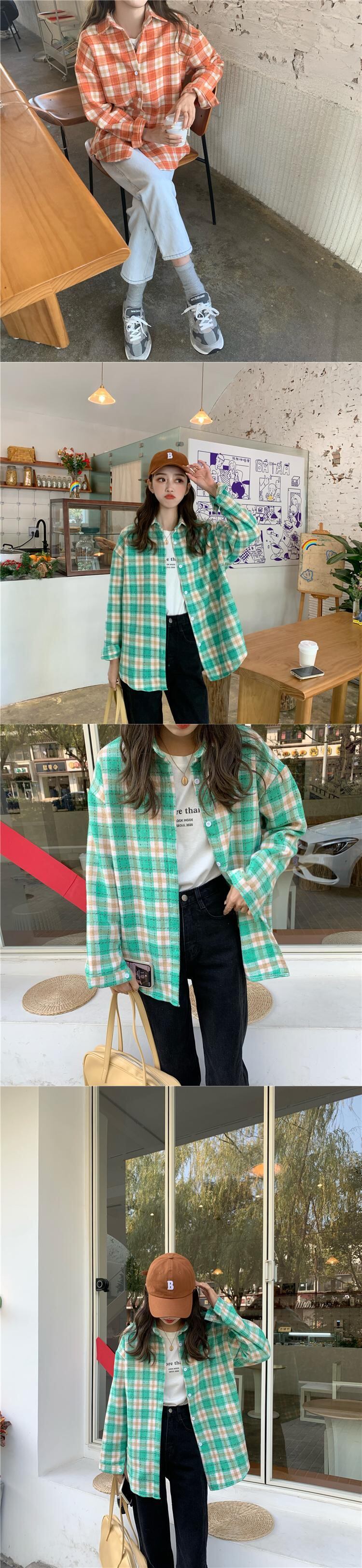 シャツ スプリングスタンダード格子柄ルーズスリムトップス ロング レトロ 春物 YY-ファッション10104757098
