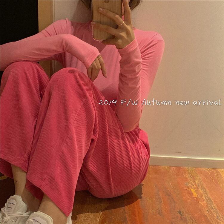 スタンダードシャツ レッドコーデュロイパンツ スプリング ピンク レトロ 春物 YY-ファッション67614754216