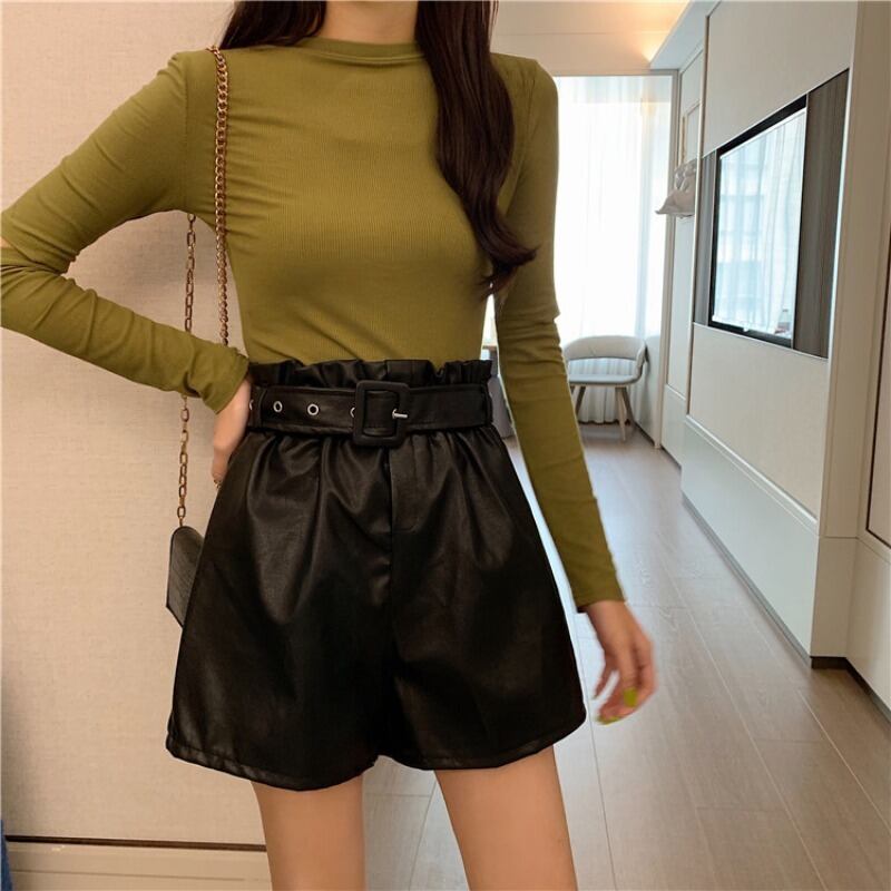 パンツ オータムウィンタールーズハイウェストウェスト薄手レザーショーツ 秋物 冬物 ブルマー YY-ファッション46031678566