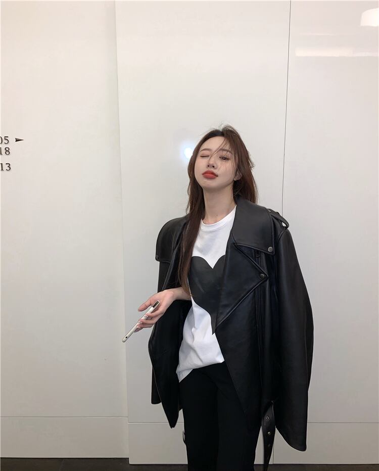Tシャツ シャツ ルーズロングブラックトップス レディーススプリング 春物 YY-ファッション92576856107