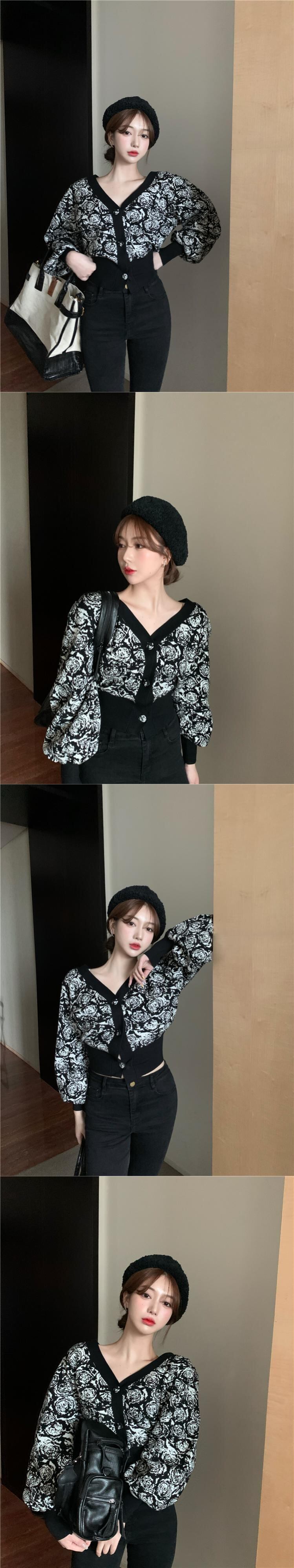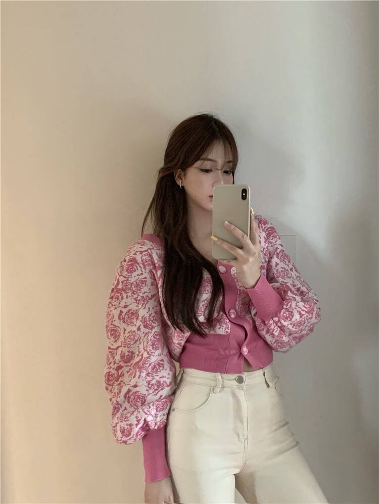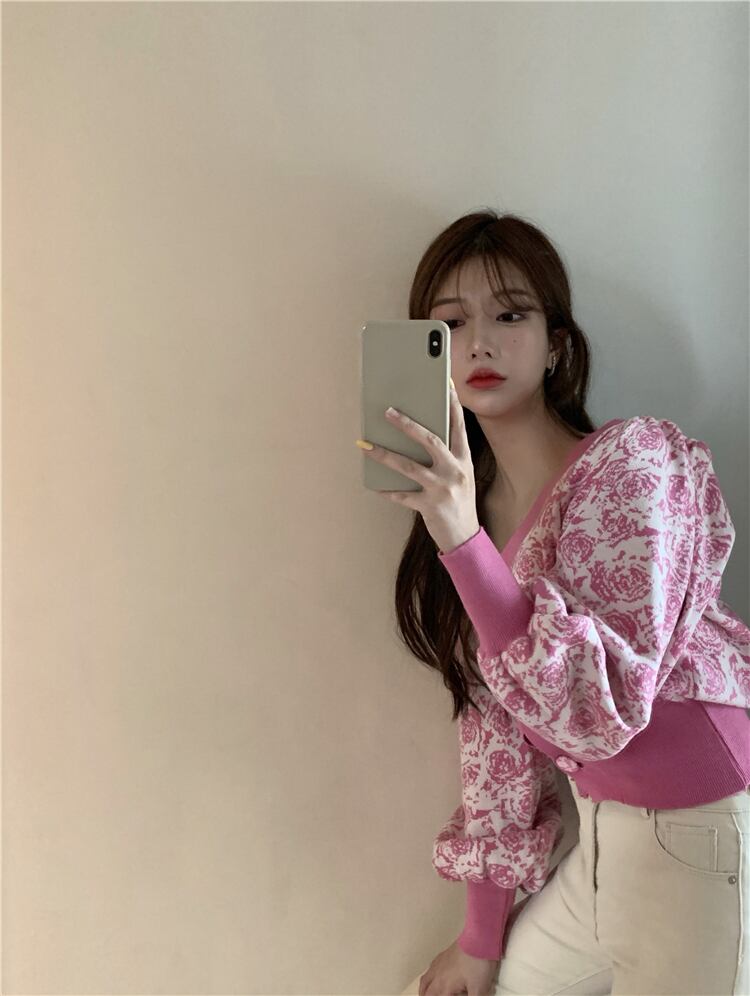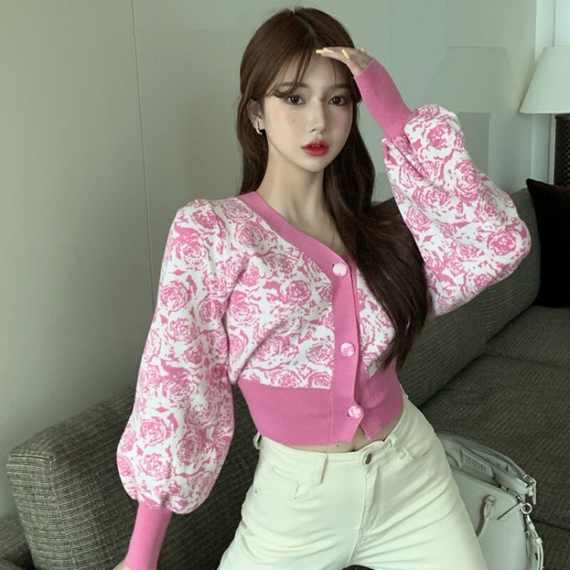スタンダードカラーVネックウェストショートスリーブセーター スプリング ランタンスリーブ レトロ 春物 YY-ファッション57370191820