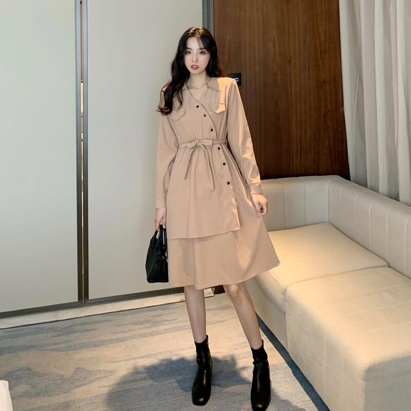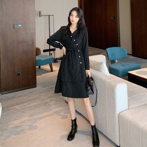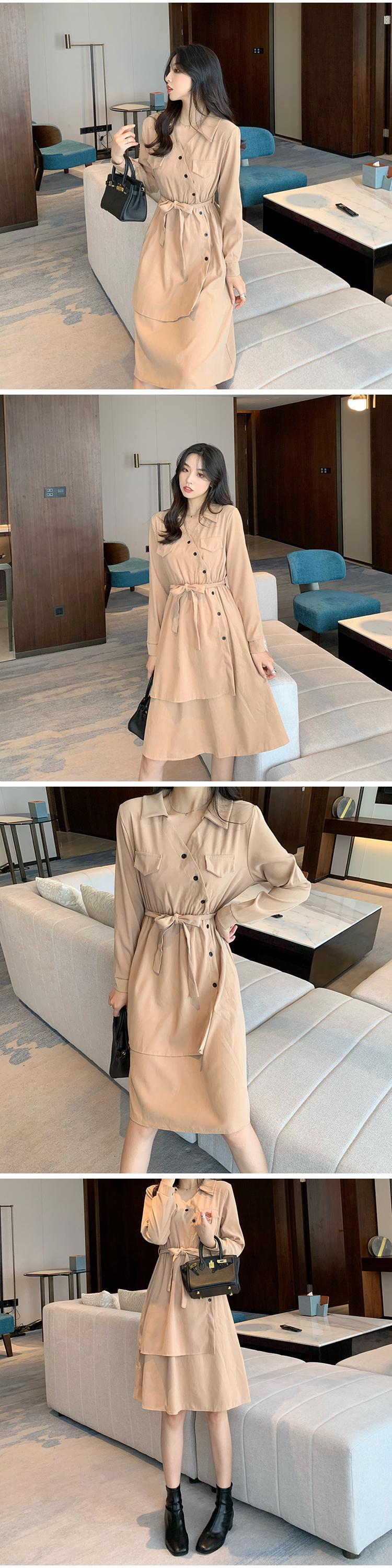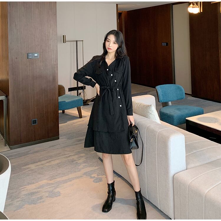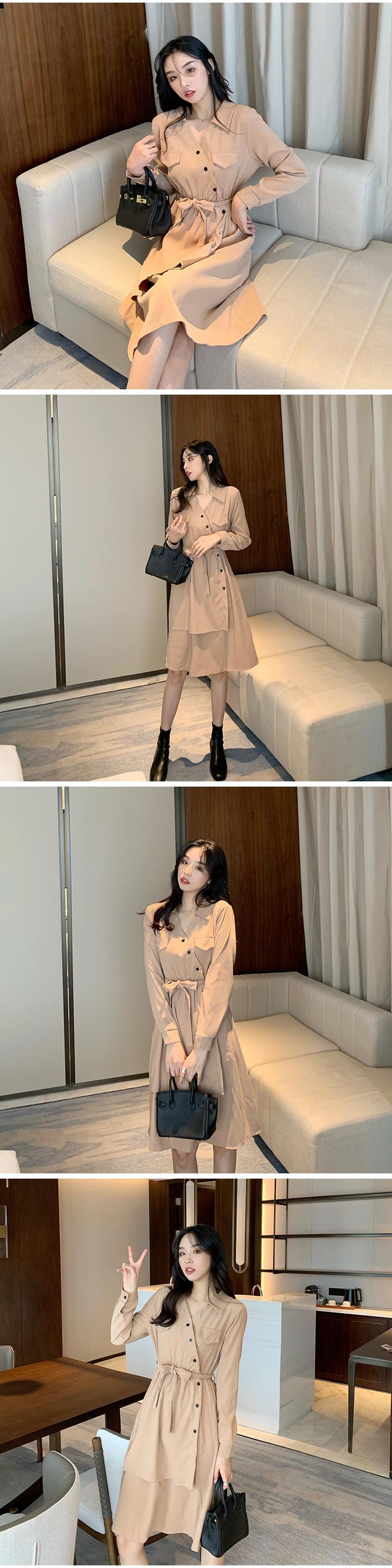 スプリングウェスト薄手スタンダードシャツ スカート Vネックドレス ロング レトロ 春物 YY-ファッション98179043784
