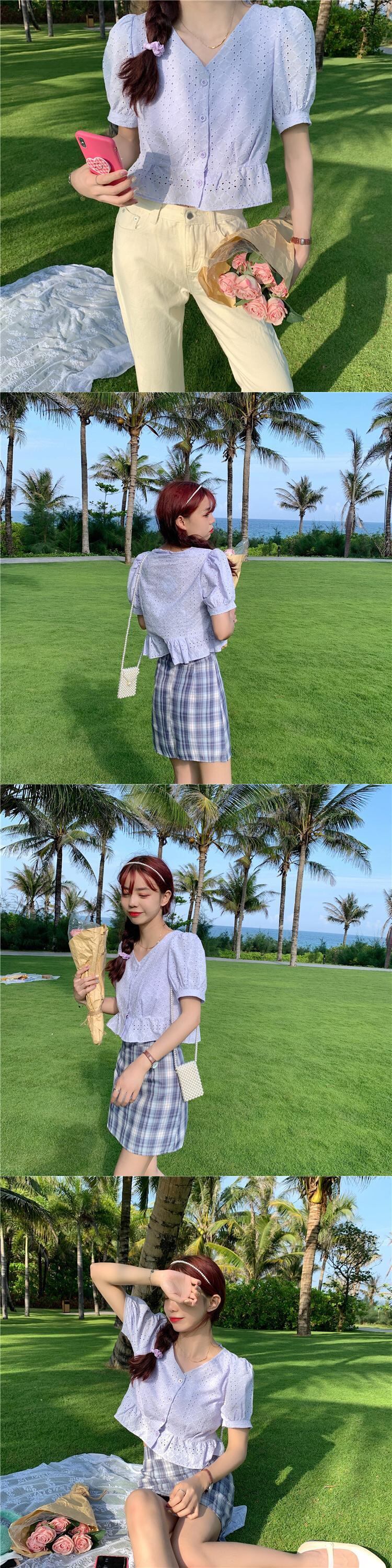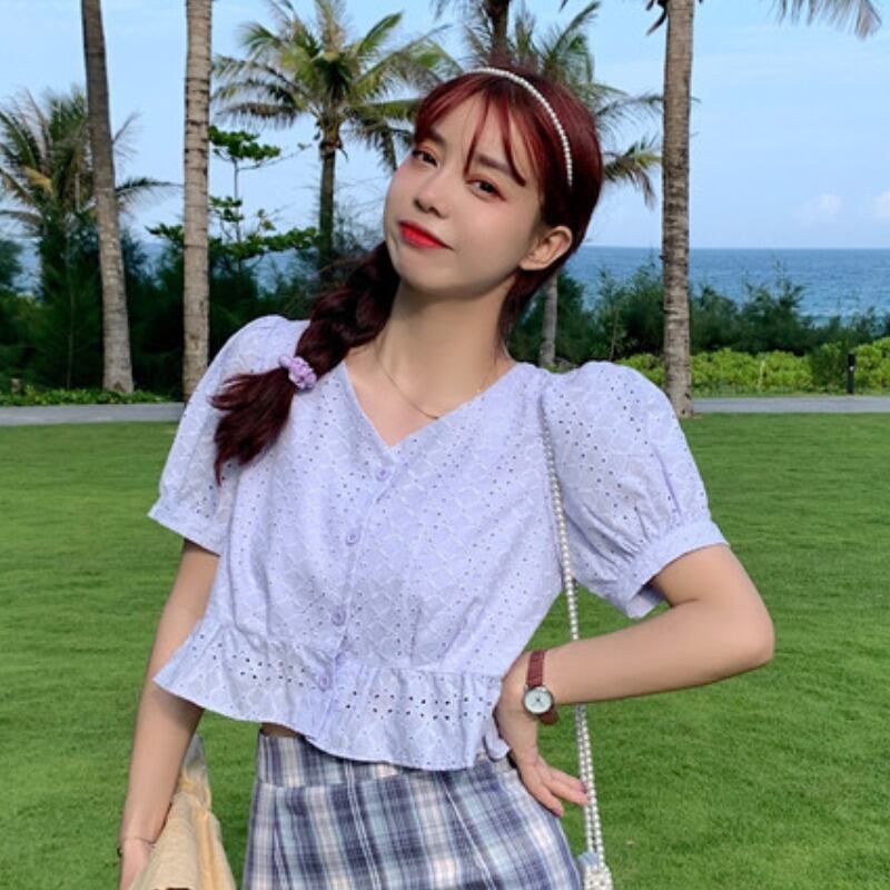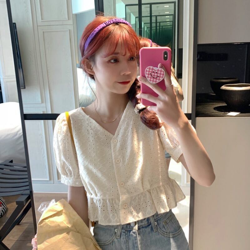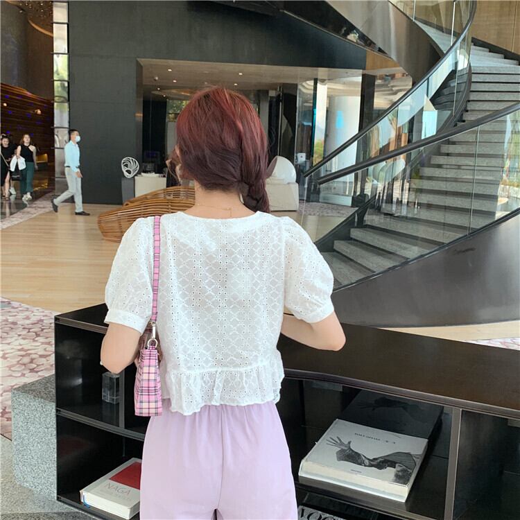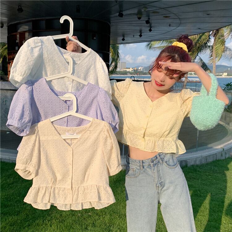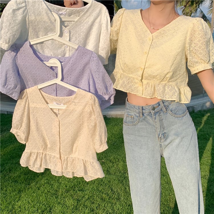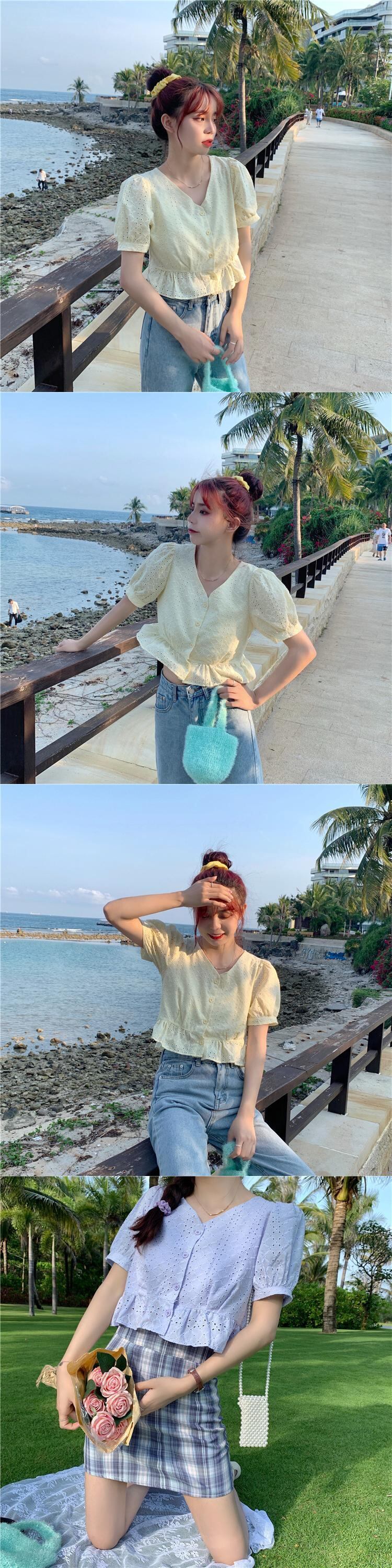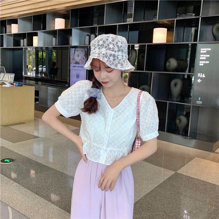 Vネックレースシャツ サマーブラウス 夏物 YY-ファッション8736007137