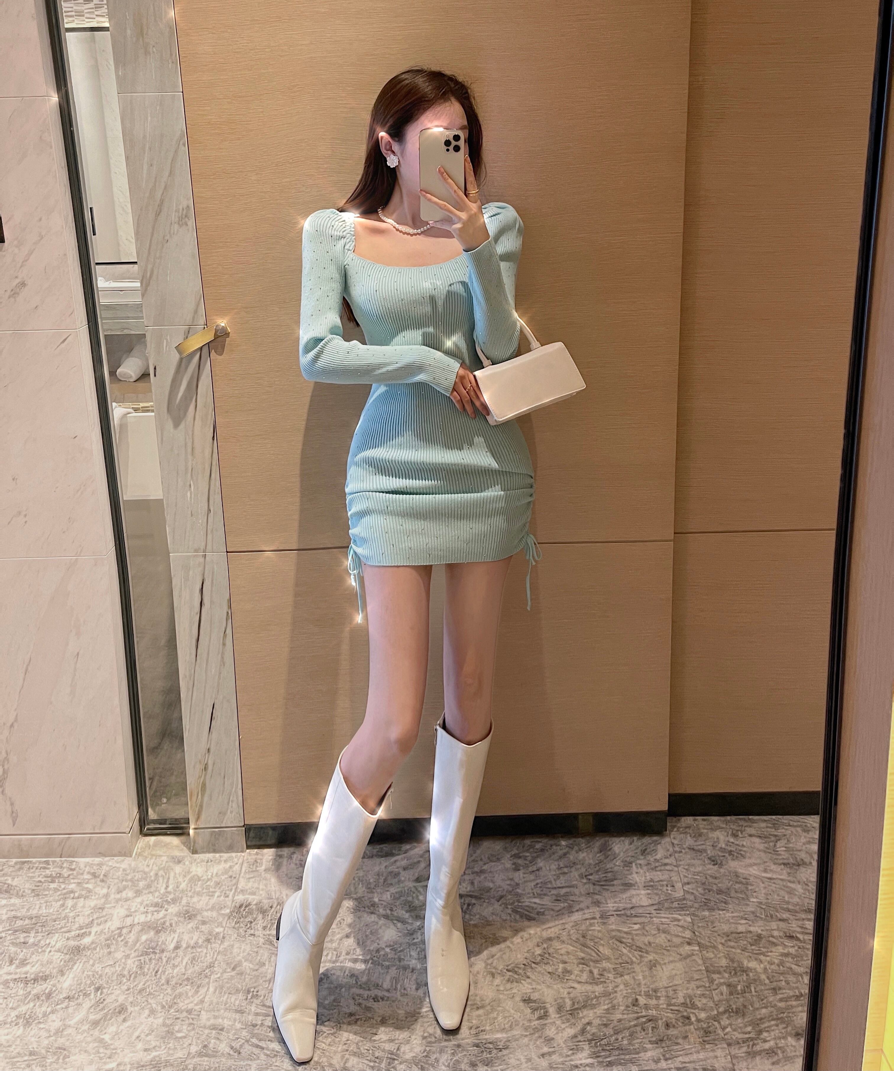 トップス ニットスカート スプリングオータムスタイルスリムフィットドレス 春物 秋物 スクウェア YY-ファッション21251477590