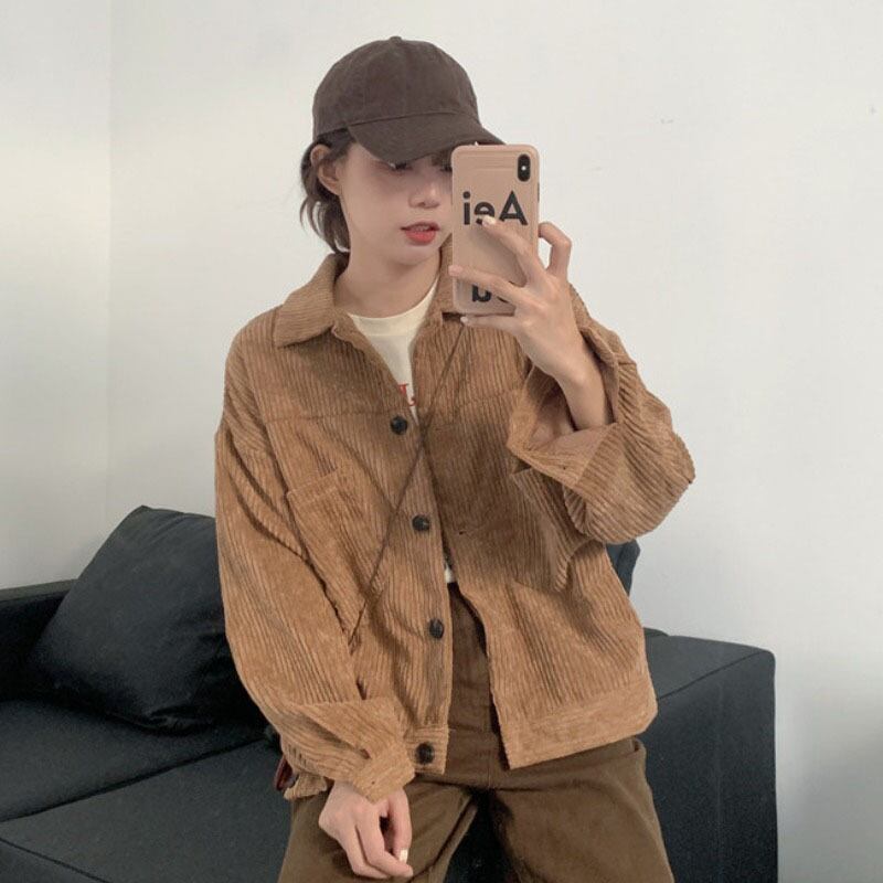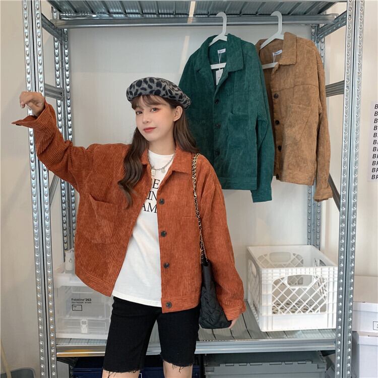 ジャケット スプリングスタンダードルーズスリムグリーンコーデュロイブラウス レトロ ストリート 春物 YY-ファッション68539624847