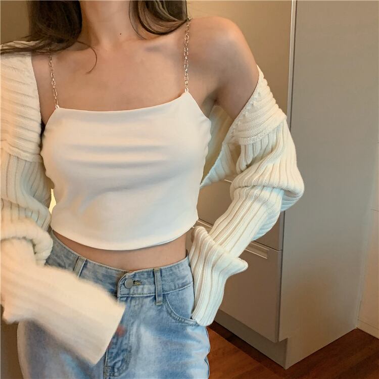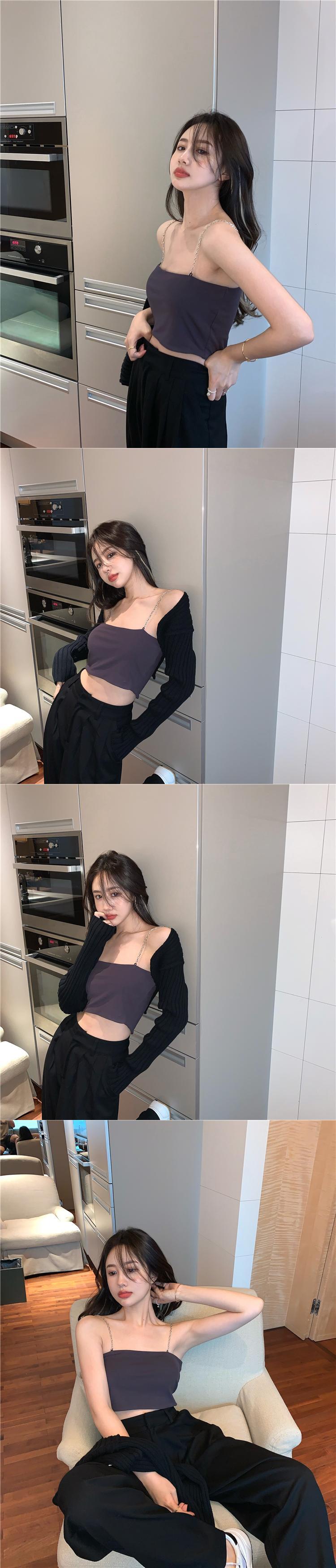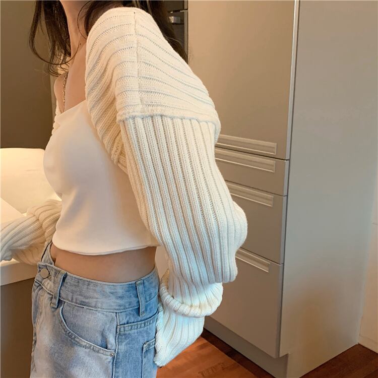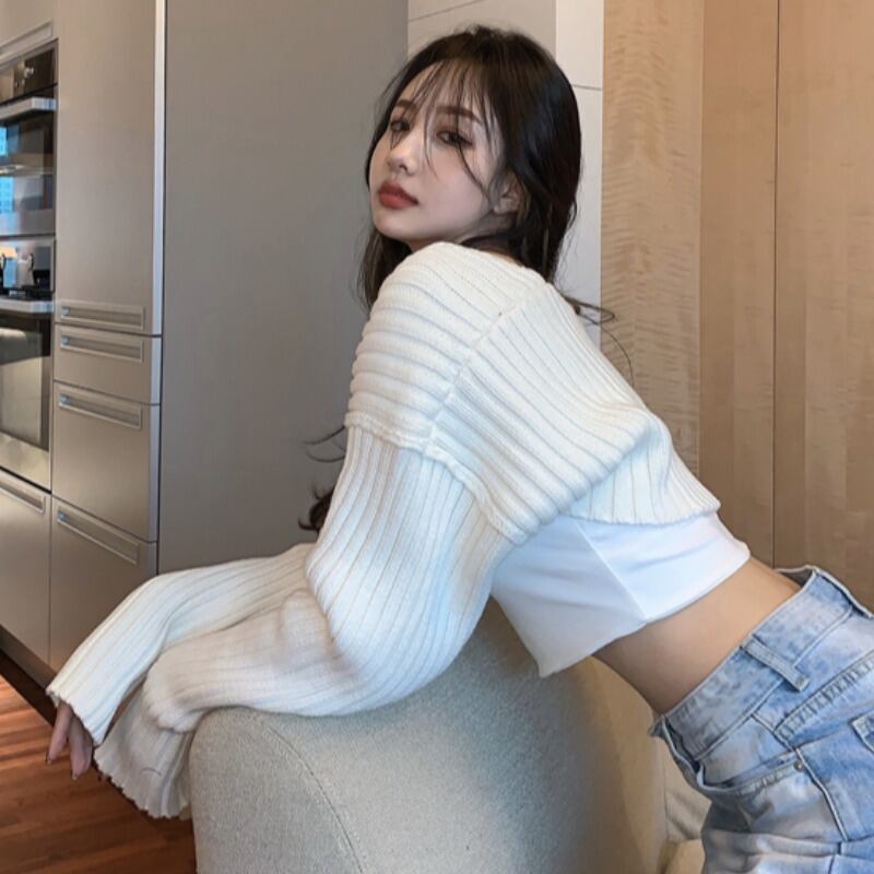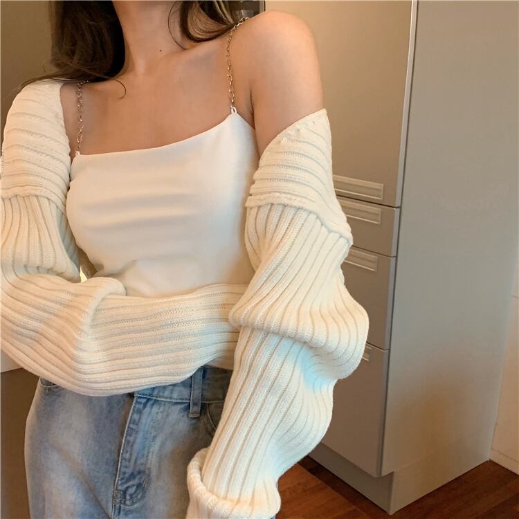 スリムチェーン ブラックホワイトニットウールブラウス カーディガンジャケット ロング YY-ファッション49622952645